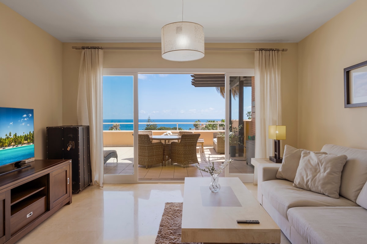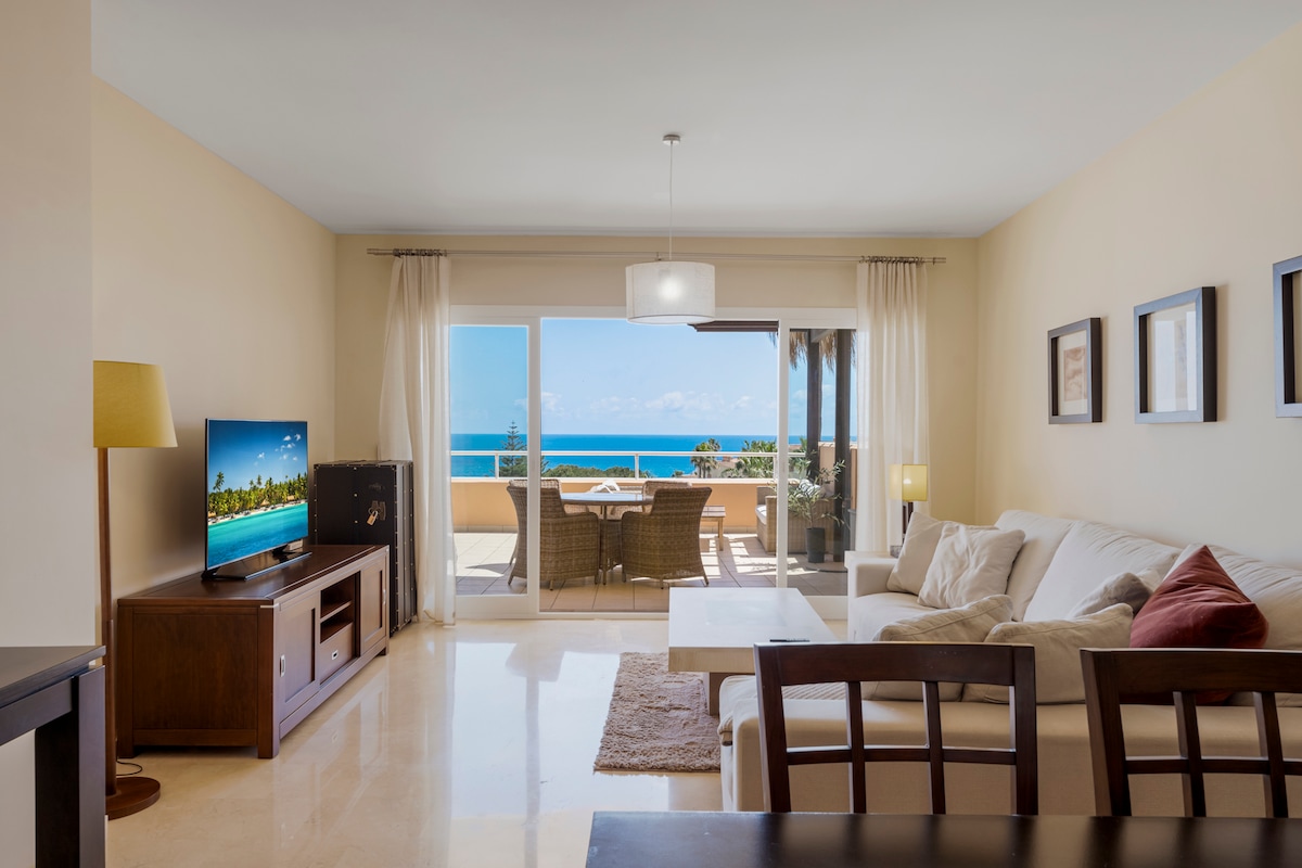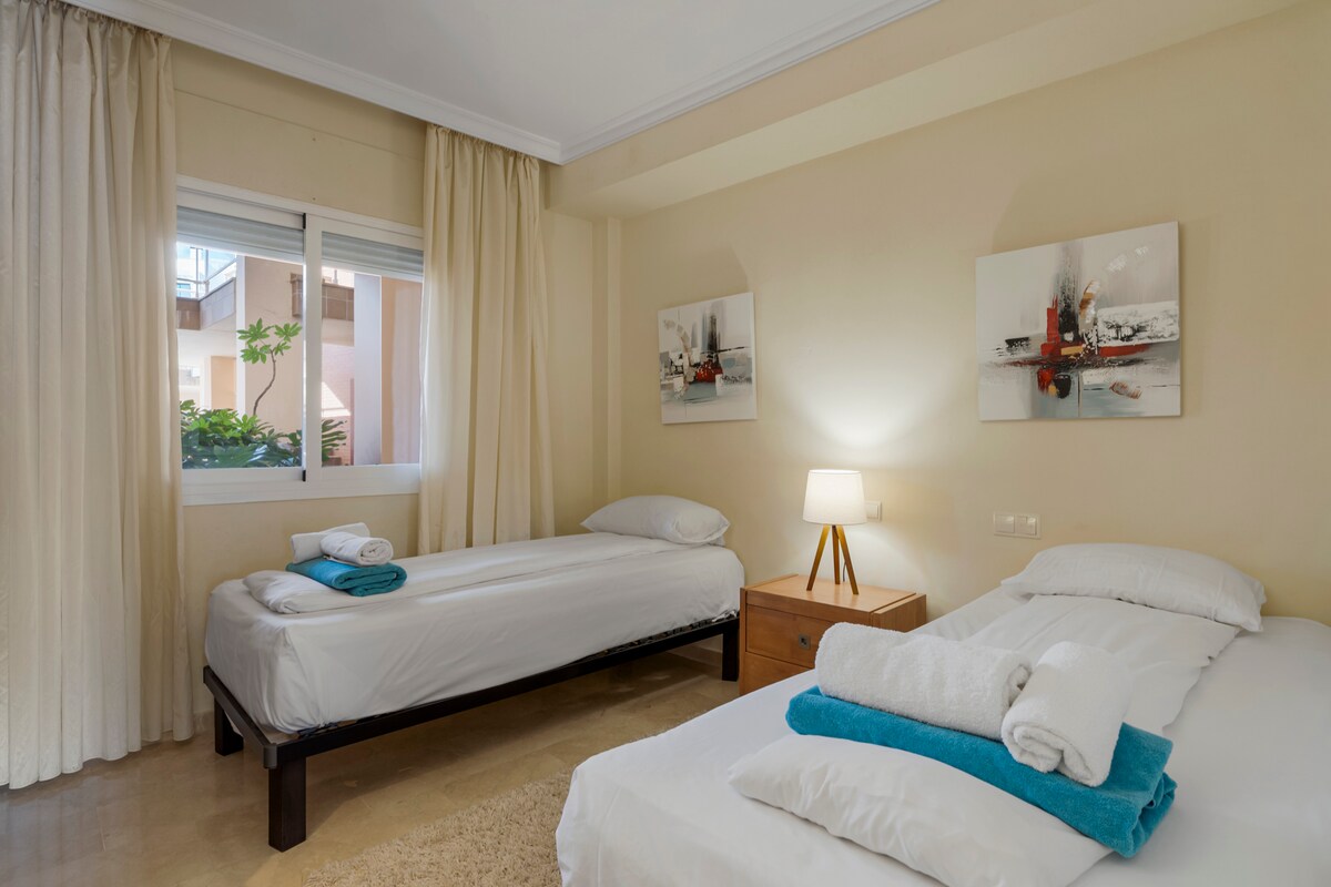 2 swimming pools with sun beds (including shallow ended children pool) and parking lot are available for Malibu residents. BEDS: King size bed in the Master bedroom 2 single beds (90 cm) in the second bedroom Air conditioning, wifi. Gated parking in front of the building with assigned place. Modern, fully furnished apartment sits among exotic and lush tropical gardens, restaurants, bars, a mini-market. One of the biggest shopping centre of Costa del Sol - Miramar - is located only 2km away (5 minutes away by car) The chic and upmarket hotspots of Marbella and Puerto Banus are less than 30 minutes away; while for culture vultures and those looking for a real slice of Spain, the beautiful city of Malaga can be easily reached by train. Some nearby cities you can visit are: Ronda (52 km), Granada (128 km), Cádiz (237 km), Seville (209 km), and Córdoba (161 km). If the guests need help we are nearby to take care of it. Weather forecasts do not suggest any significant changes and the rain here does not usually exceed 50 days each year. This climate is due to its unique geographical situation, namely the mountains which surround Costa del Sol, the Sierra Blanca and the Concha, visible from the entire area. Allied to the position of its coastal inlet, the effect is to shelter. Holiday apartment for rent in Costa del Sol. *The individual making the reservation must be 25 years of age or older. VFT/MA/50513 Baby Package €39: including cot and high chair, on request and subject to availability. The courtesy set is provided only for the beginning and not for the entire stay.Pools have very different opening times, please inquire before the booking to make sure the pool is open during your stay.