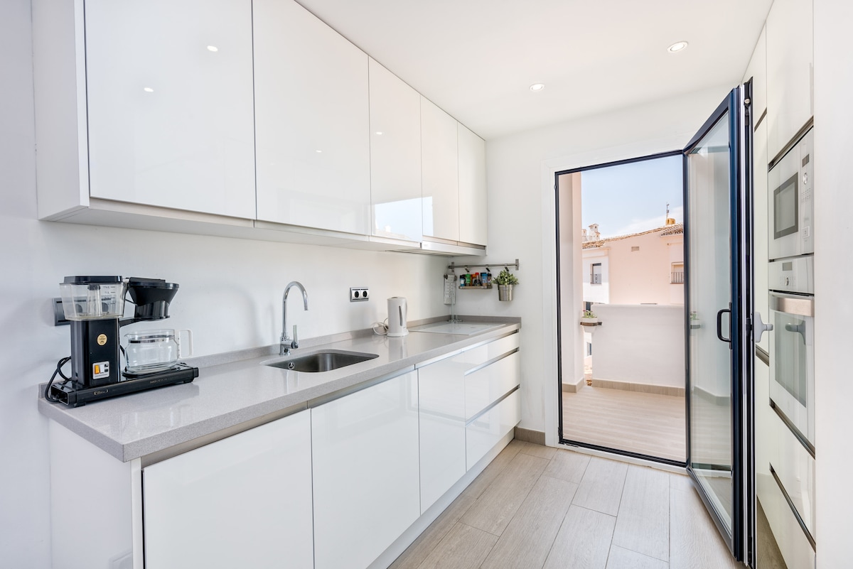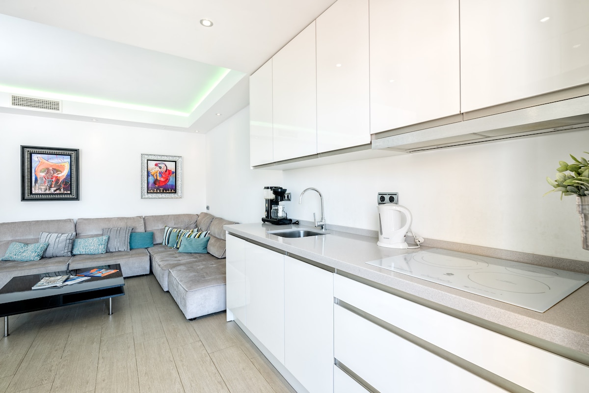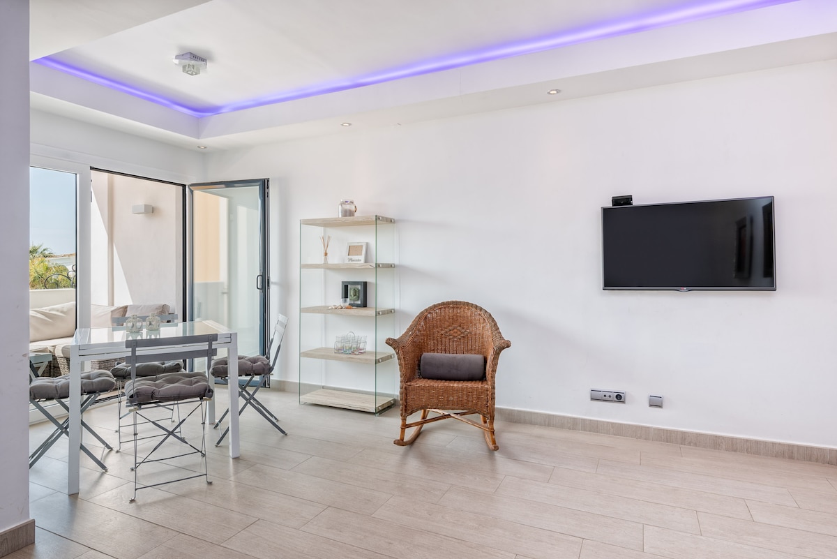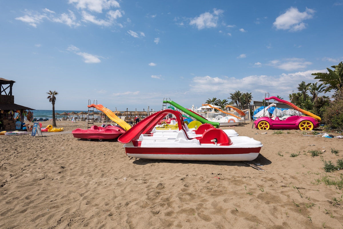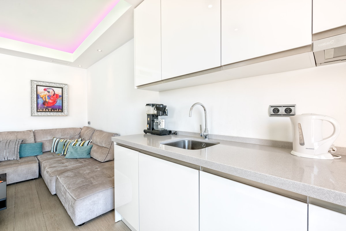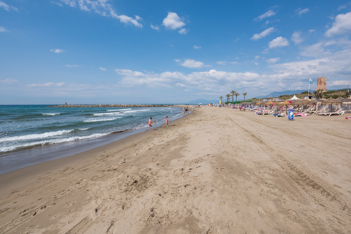The apartment offers 2 bedrooms, a bathroom, a cozy terrace with lounge area and partial sea views, fully equipped kitchen with high tech home appliances, and a spacious living room. Sleeps as standard 4. The living room is divided into a seating, cooking and dining areas. The dining area sits 4 and is found in front of the glass doors leading to a terrace. The seating area has a large sofa and flat screen TV. The ceiling is backlighted by colour changing LED lights with remote control. The kitchen has everything you need for preparing your meals, as cookware, glassware, utensils, oven, stove, fridge, dishwasher, microwave, coffee machine, electric kettle and toaster. From the kitchen and the living room you have an access to a marvelous terrace, with comfortable sofa, where you can enjoy your coffee contemplating fantastic partial sea views. The master bedroom offers a king size bed and a spacious built-in wardrobe. The second bedroom has a trundle bed. The bathroom is equipped with a walk-in shower, sink, WC, washing machine and dryer. The complex is secure and offers multiple services, as a free secured parking, two shared swimming pools, for kids and adults, only for residents, hair dresser, restaurants, children´s playground and a direct access to the beach. On the beach, you can find water sports activities and entertainment for kids, sunbeds and umbrellas available for rent, bars and restaurants. You will have all amenities, like restaurants, supermarkets, shops, etc., on a short distance. Also, the city provides all types of entertainment, like golf camps, hippodrome, water sports on the beach, shopping centers, cinema, and many activities in other villages nearby. Baby cot and high chair on demand Airport transfers available on demand Air conditioning throughout Wifi Parking The beautiful port of Cabopino and its boat marina abounds with many restaurants of all nationalities... Chinese, Spanish, Italian and English.... the famous "Albert's on the Dock", is a must for at least one evening meal as you will appreciate its stunningly exotic interior.The courtesy set is provided only for the beginning and not for the entire stay.