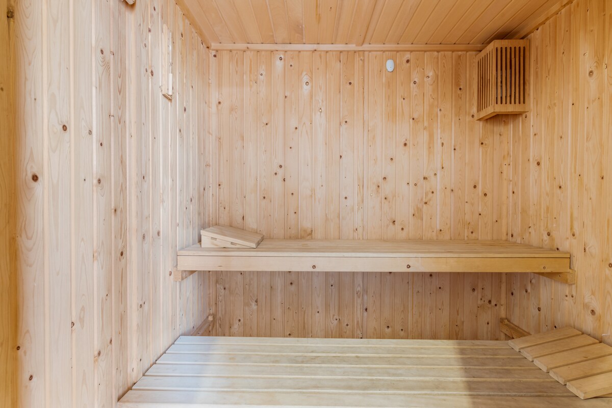 As you enter, you will immediately feel at home in the cozy living area with its comfortable sofa and flat-screen TV. The fully equipped kitchen is perfect for preparing delicious meals, and the dining area has plenty of space for you to enjoy them together. The apartment also features two spacious and beautifully decorated bedrooms, each with their own comfortable beds and ample storage space.But the true highlight of this apartment is its shared outdoor pool and sauna, perfect for unwinding and soaking up the sun. Whether you prefer to lounge by the pool with a good book, or indulge in a relaxing sauna session, you will have everything you need to enjoy a truly rejuvenating holiday.