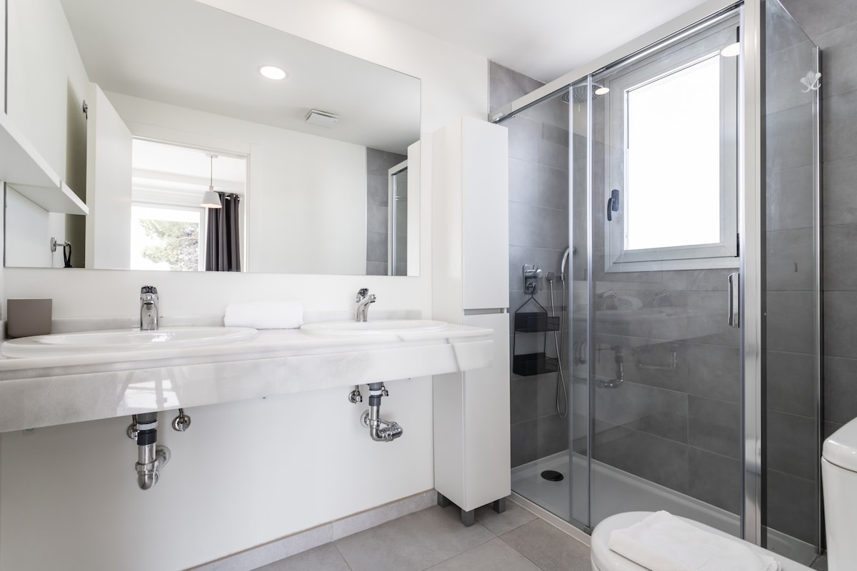 The apartment is otherwise fully equipped with WIFI, A/C in all rooms, dishwasher and washing machine, free parking, communal and seasonal pool and much more.