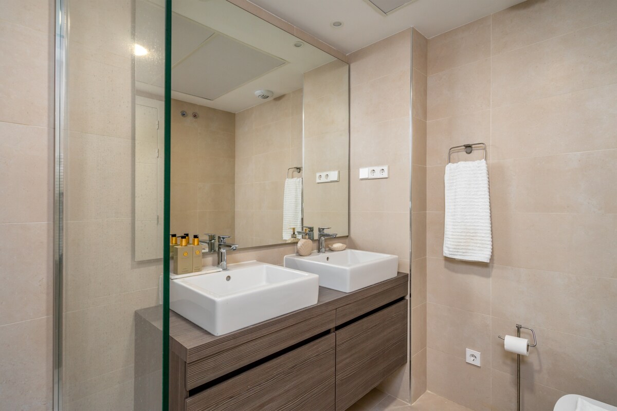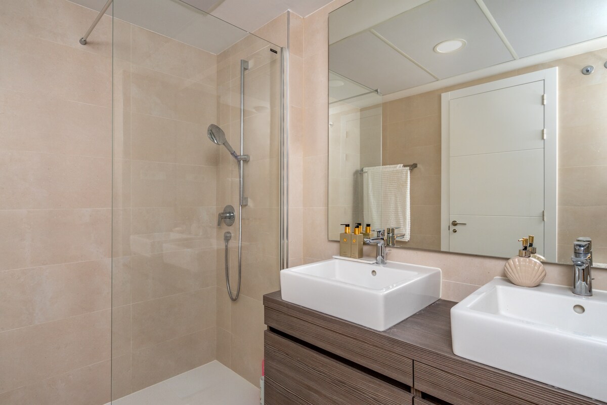 There are 2 bedrooms where the master bedroom have a double bed and wardrobe space and the second bedroom has 2 single beds and its own access to the large terrace.
