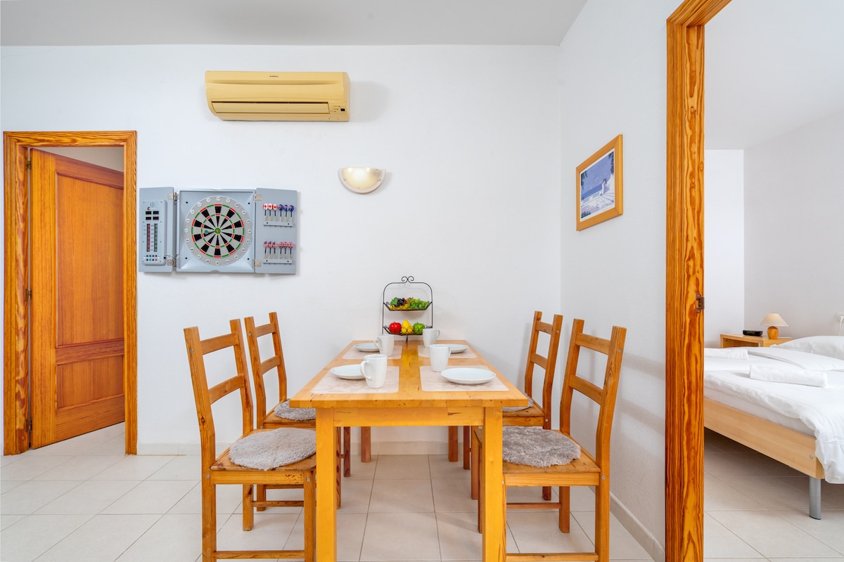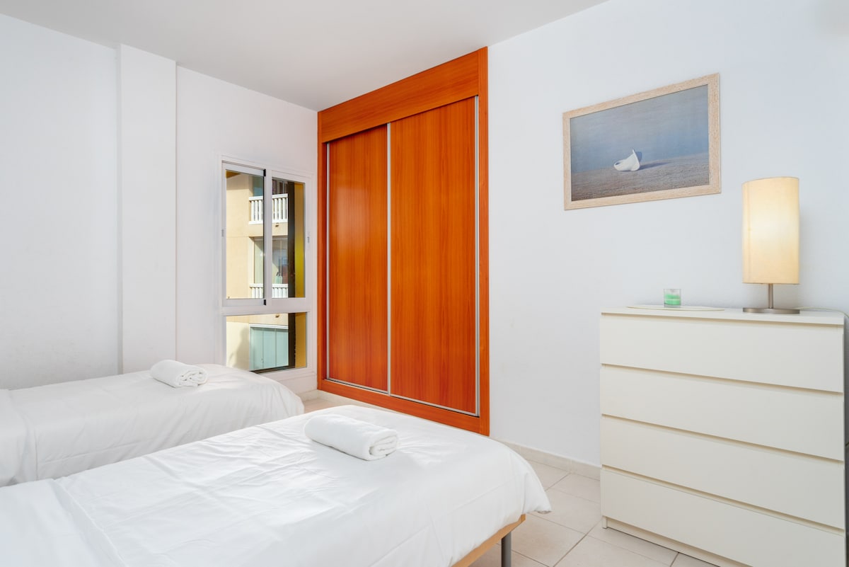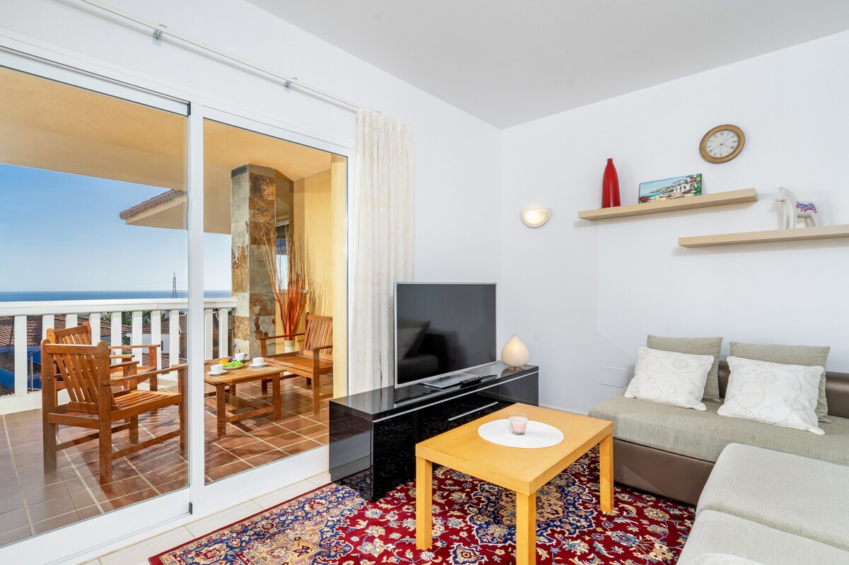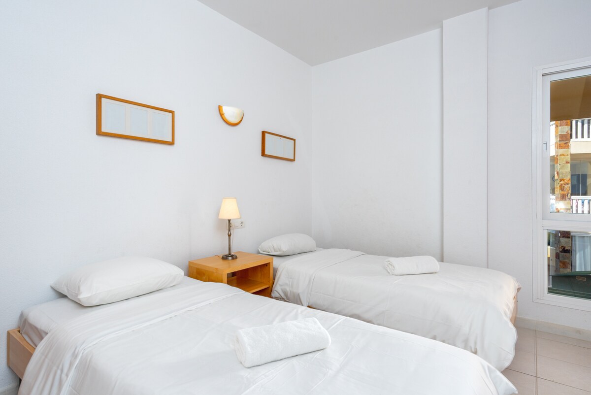 As you step into the apartment you will be greeted by a bright hallway with the fully equipped kitchen to the left with a dishwasher, fridge and freezer, coffee machine and much more. Straight ahead you have the large living room with a large and comfortable sofa, 55 "smart TV with 200 international channels, 2 lovely balconies with a breathtaking view of the area and the Mediterranean.Masterbedroom has a double bed and ensuite bathroom, ensuite as well as A / C with cooling and heating, the second bedroom has 2 single beds as well as storage and A / C with cooling and heating.