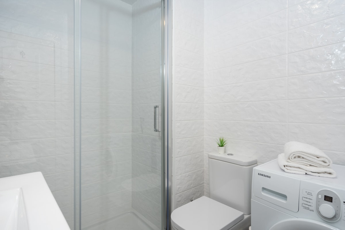 As you step through the door, you’ll first notice the newly renovated bathroom. To the right is the inviting living room, featuring a comfortable sofa, a large TV, and a cozy balcony. Adjacent to the living room, you'll find a compact yet fully equipped kitchen, complete with a dishwasher, coffee maker, fridge/freezer, and everything you need for preparing meals during your stay.Both bedrooms are equipped with A/C (both heating and cooling). One bedroom offers a spacious double bed, while the other features 2 single beds and its own private balcony.
