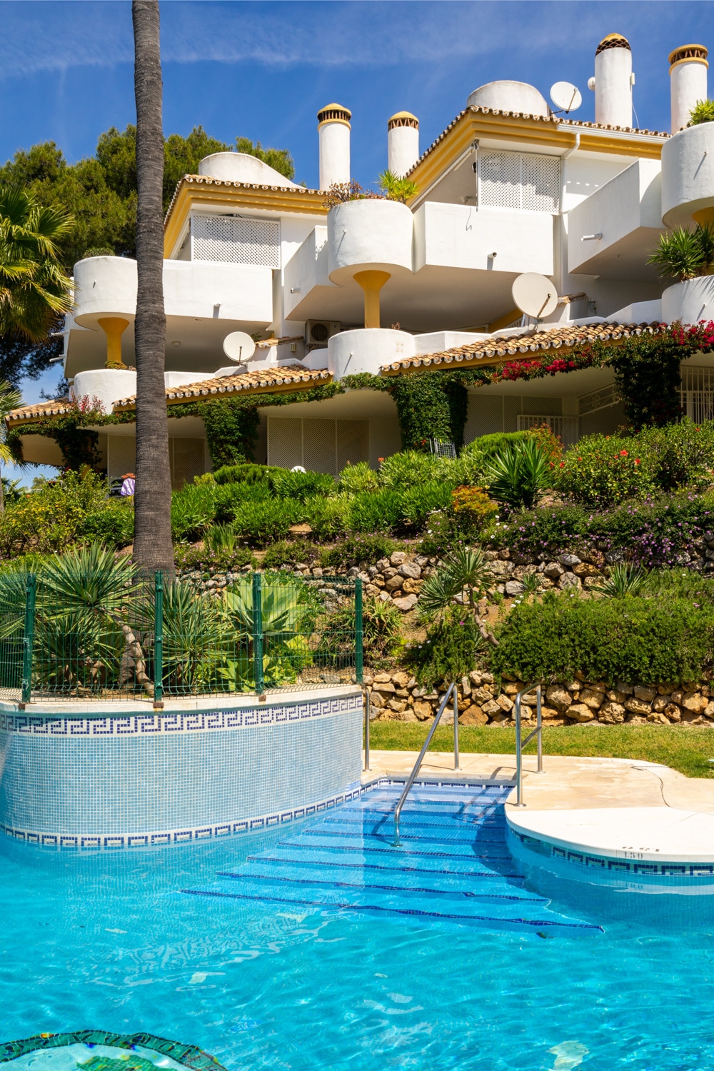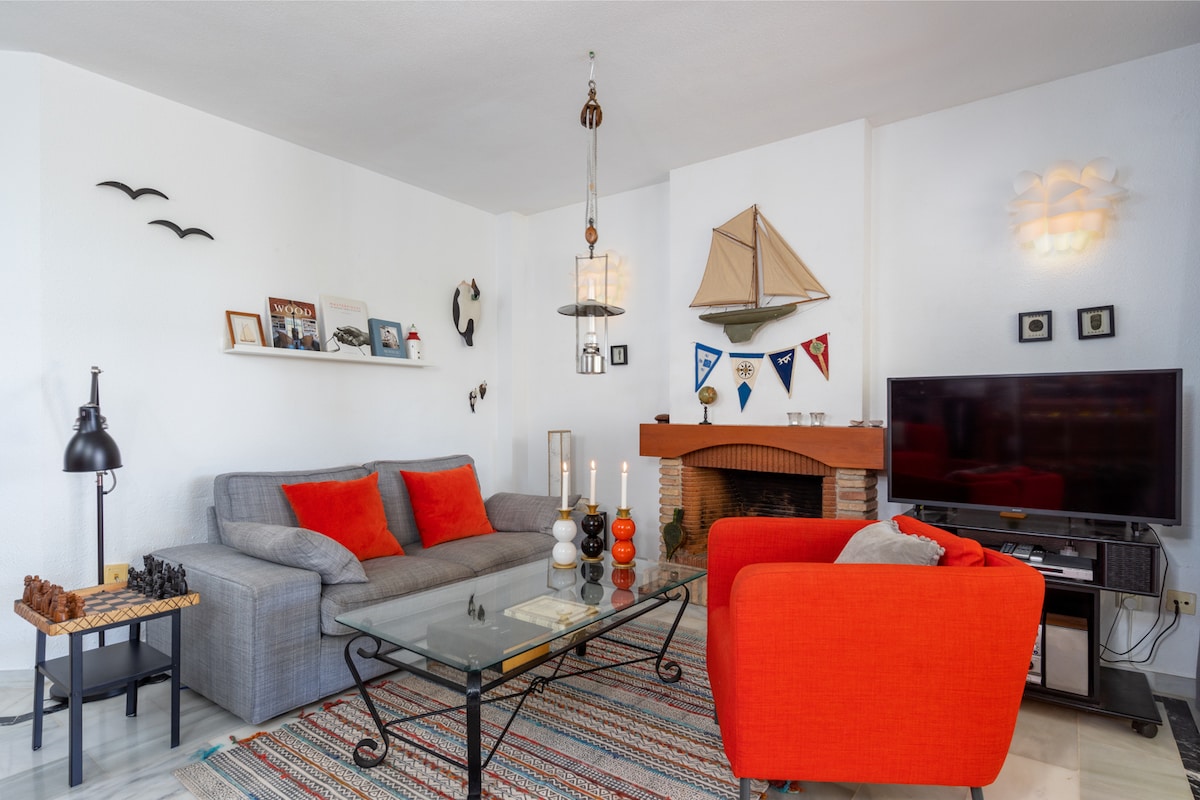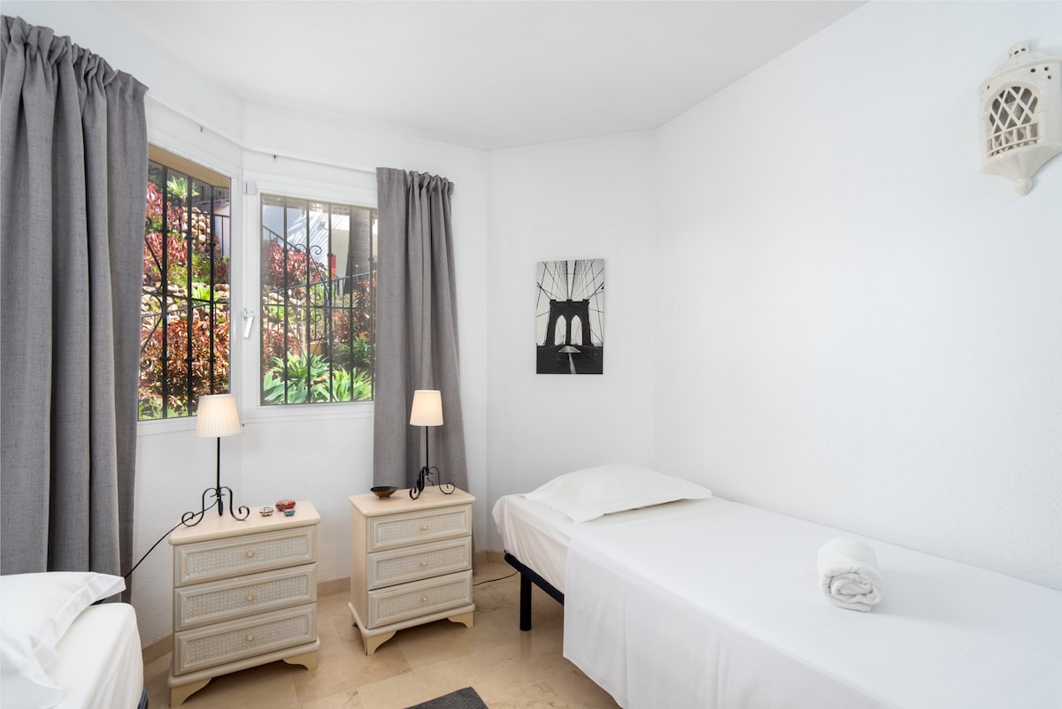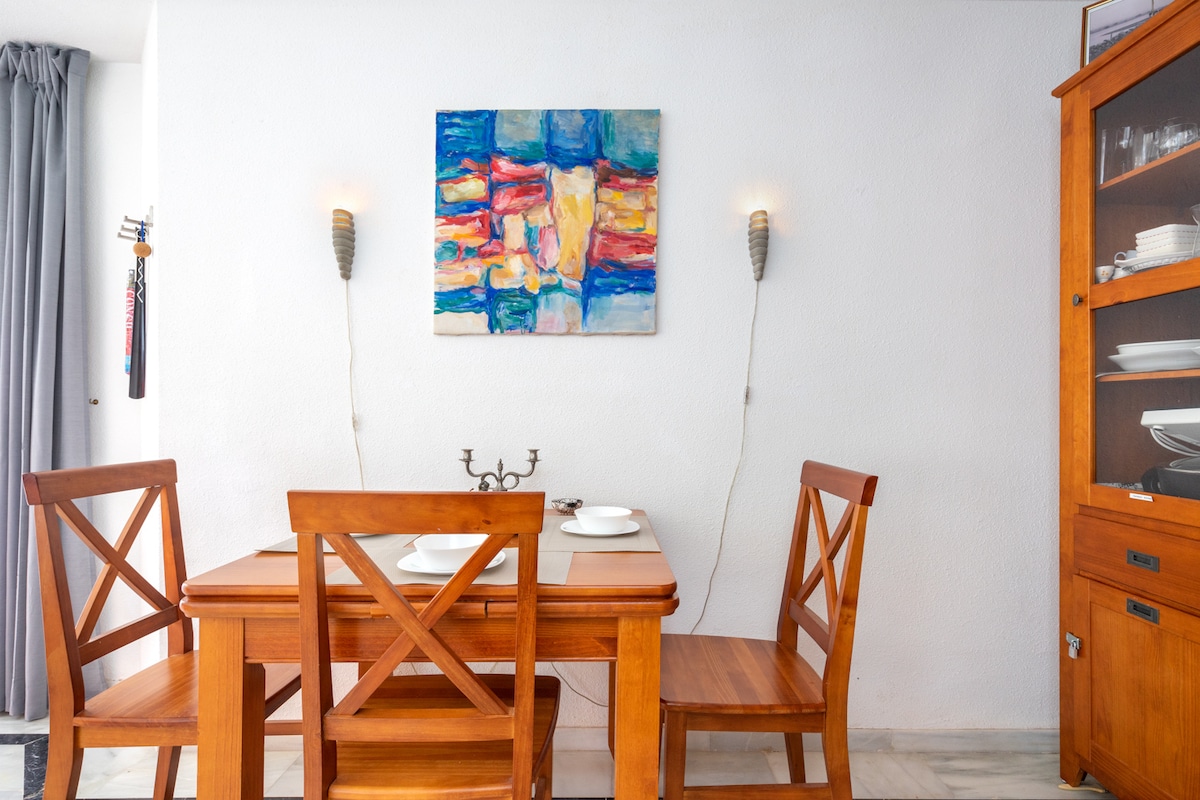 Calahonda is an area between Fuengirola and Marbella that is rich in golf, sports and nightlife, where you gather at one of the many restaurants and bars nearby. In the vicinity of the apartment you have food stores such as Lidl, Mercadona and Supersol as well as a large selection of cafes, bars, shops and restaurants.Just a stone's throw from the apartment you have the Club del Sol where you can play tennis, padel and work out at the gym, around the knot so you also have La Siesta Golf which is an 9-hole course and with green fees of only 20-30 € does it to an affordable course.When you enter the apartment you first go through the private patio and the small garden where you will certainly spend most of the time and enjoy the view and the tranquility, from the terrace you will enter the living room which is cozy decorated with marine historical details adorning the walls There is a Smart TV and WIFI in the living room. The kitchen is newly renovated and open to the living room and fully equipped with dishwasher, coffee maker, microwave, washing machine etc. One bedroom has a double bed (that you can separate for 2 single) and the other bedroom has 2 comfortable single beds.The bathroom with shower is also newly renovated.