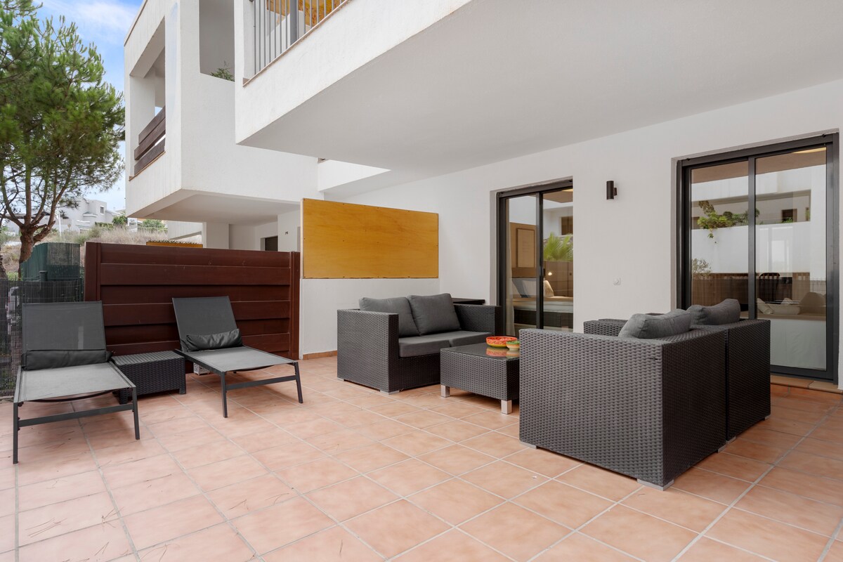 The terrace is about 40 square meters and is fenced with a lockable gate. The full kitchen is bright and fresh with granite countertops. The apartment has ceramic floors and two nice bathrooms fully tiled. Air conditioning and central heating in all the rooms of the apartment. The residential area has a lovely large pool (20 meters from the terrace) to relax in as well as your own paddle tennis court (reservation free of charge at the security guard). The apartment is very well suited for families or two couples! The area is fenced and has a 24-hour security, there are many parking spaces outside the houses, which means that you can always park a car in direct proximity to the apartment. A well-stocked Lidl shop with its own butchers is available only 150-200 meters from the apartment. La Cala de Mijas has over 100 restaurants in the village, good service and a well-kept beach. A wonderful beach promenade has been built from La Cala de Mijas which ties together the various coastal villages - you walk easily all the way to the Riviera del Sol, Calahonda and to the pleasant marina of Cabopino with its restaurants and beach lifestyle. This distance is about 6 kilometers long. In the immediate vicinity there is the 9-hole golf course La Noria Golf - within a few kilometers there are 18-hole courses such as El Chaparral and Calanova Golf. Within 10 miles there are over 60 golf courses, a handful of these counts as some of the worlds best. A few kilometers from the village is also a horse race track for those with interest in horses. The town of Fuengirola is only 9 km east of the village - west, the well-known and exclusive city of Marbella is only 20 km away. Marbella has the most extensive offer on the Costa del Sol of amusement, restaurant life and exclusive shops.Malaga Airport can be reached in just 25 minutes drive (33 km) - it is also possible to use public transport by train from the airport to Fuengirola and then by bus to La Cala de Mijas. Public transport is normally every 30 minutes during the day and slightly less often in the evenings. The bus stop is about 200 meters from the apartment, which means that you can manage without a car in a simple way! The apartment is modern with 3 rooms, two bedrooms and two bathrooms. Fully equipped kitchen with connection to a small laundry room with washing machine. Unique is the really large terrace, partially covered why the shadow is always there no matter the time of day. Sliding doors to the terrace from the living room and both bedrooms. Centrally controlled air conditioning and central heating in all the rooms of the apartment. In the hall there is a drawer and hooks to hang clothes on. In the drawer, the remote control is located to open the large car port needed to enter the area to park a car. A fully equipped kitchen with dishwasher, fridge / freezer, stovetop with fan, oven and plenty of work surfaces. Baby Package €39: including cot and high chair, on request and subject to availability. The courtesy set is provided only for the beginning and not for the entire stay.