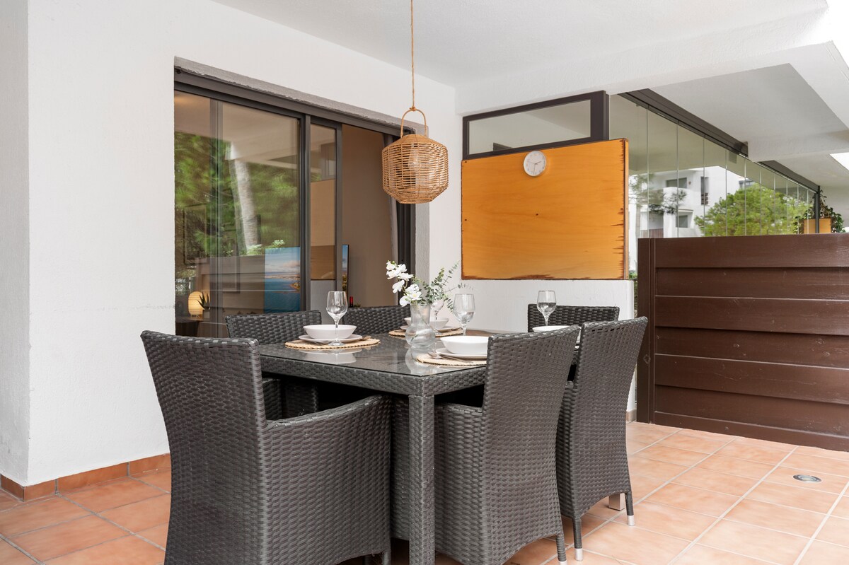 The apartment was nice and clean and perfect for our requirements. Just a few seconds walk to the pool and a ten minute walk to all the bars and restaurants and the beach makes it an ideal location with or without a car. The large terrace area is ideal for meals and relaxing before the night ahead. I would highly recommend it for couples and families with beds for four in two bedrooms.