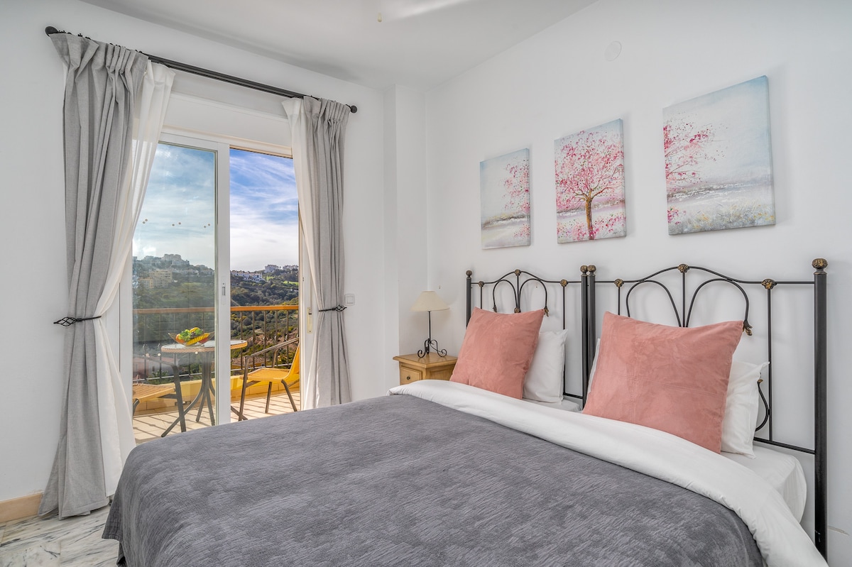 Master bedroom has a comfortable double bed and its own newly renovated bathroom and a French balcony with sea views.