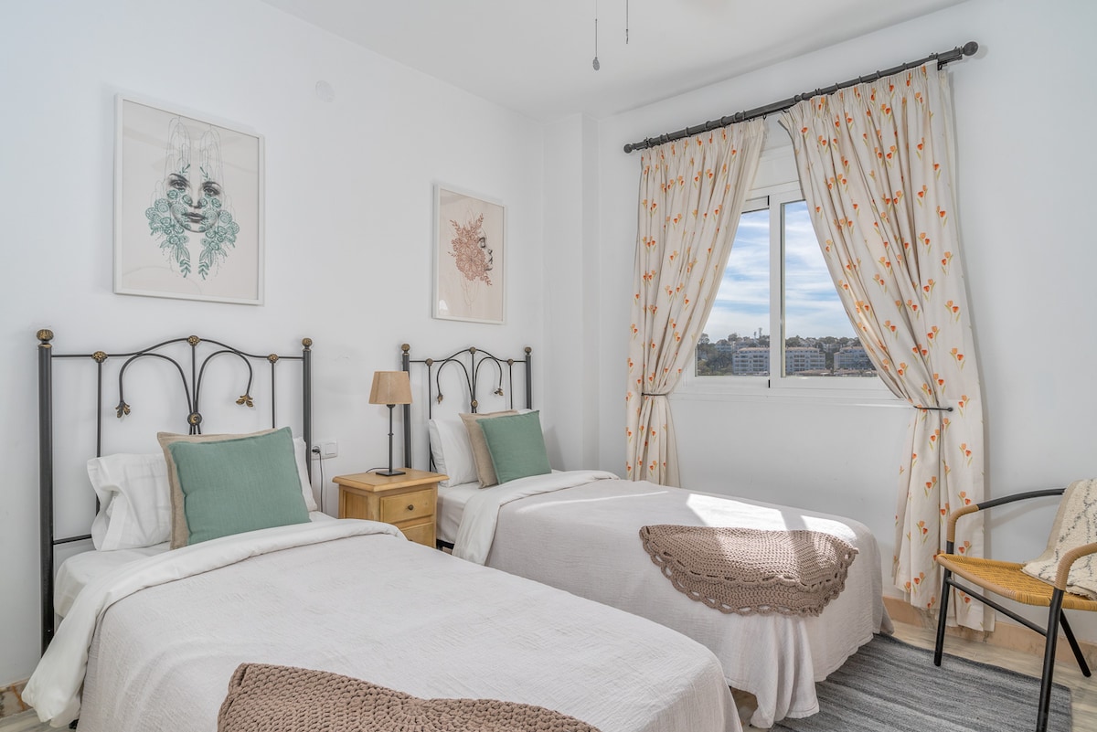 Further into the apartment you have 3 bedrooms where one bedroom has 2 single beds, the other bedroom has a double bed and a private balcony with afternoon sun,