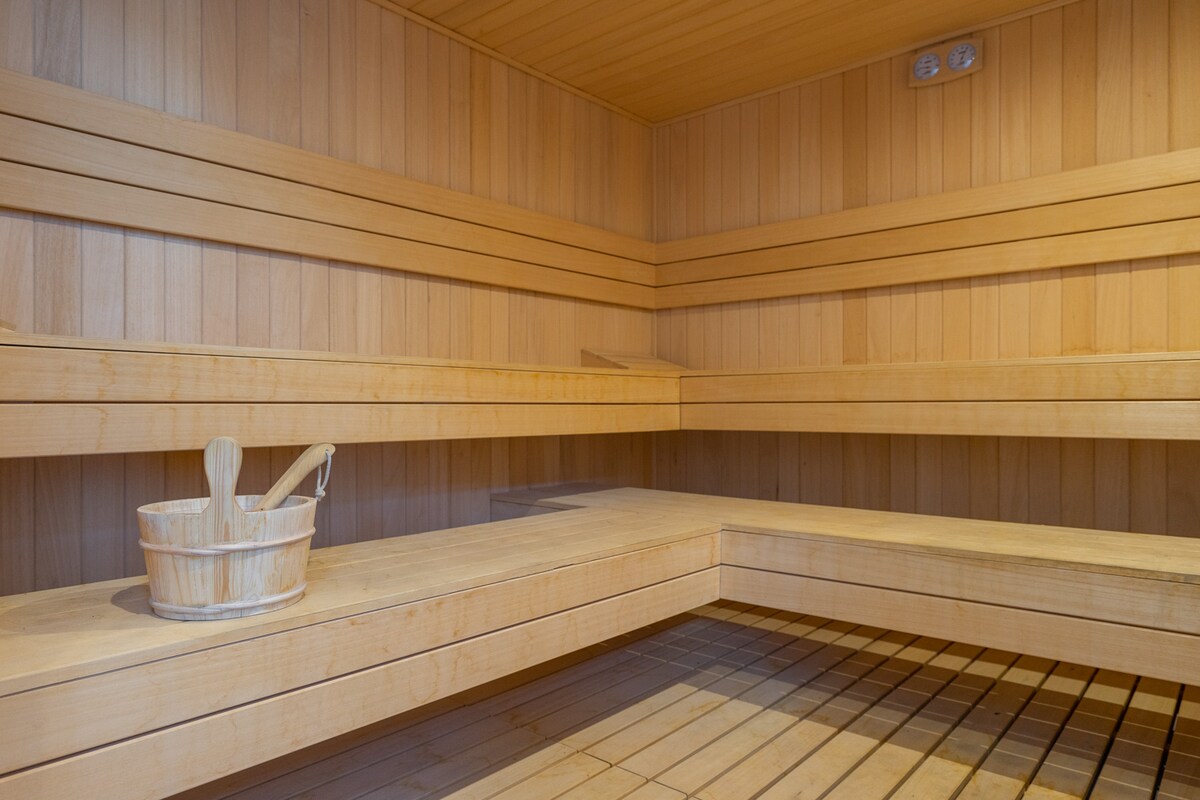 The gym is a popular feature, offering pool views while you work out. In the same building, you'll find a sauna with direct access to the pool area, creating the perfect space for relaxation.
