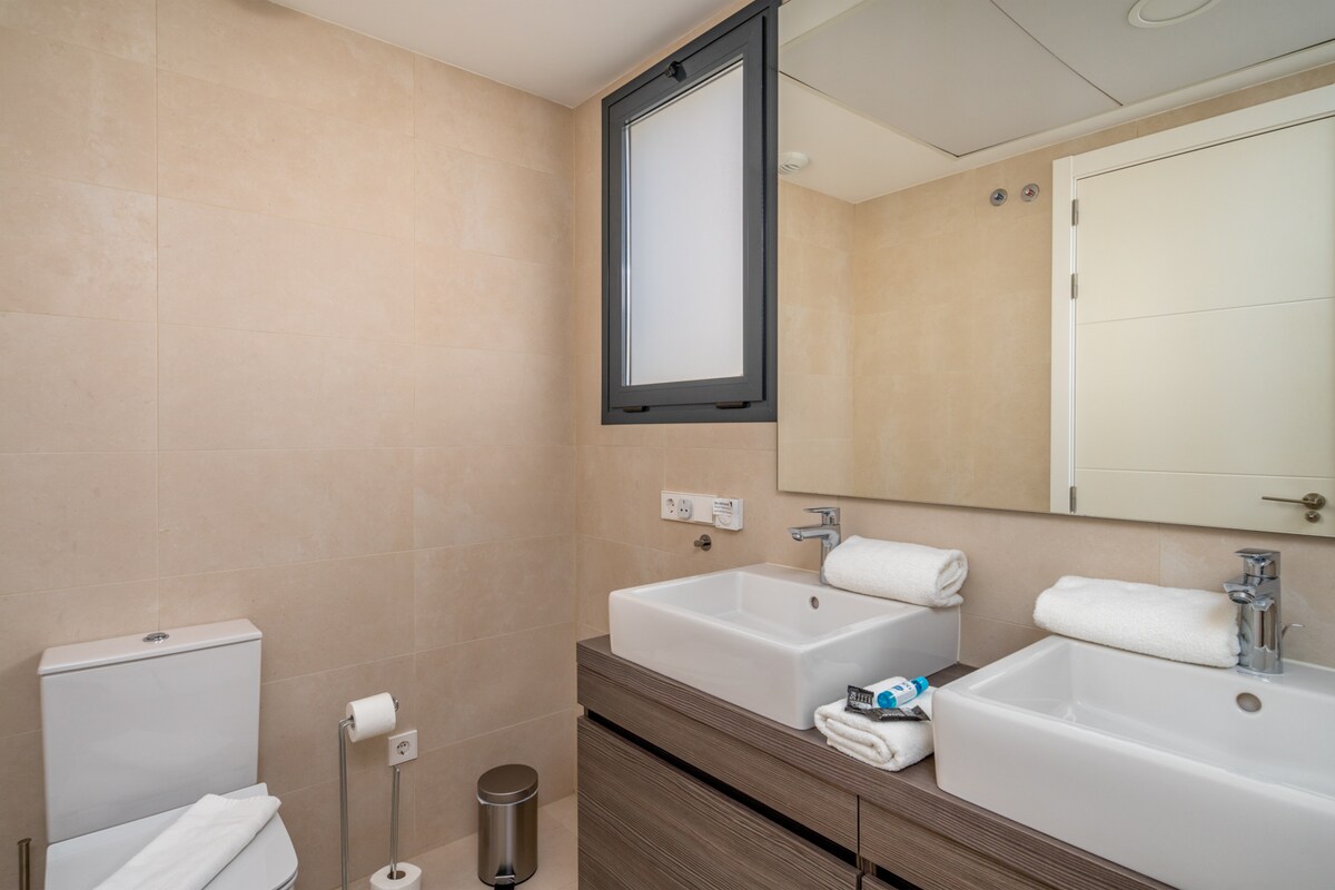 To ensure a comfortable stay, the apartment is fully equipped with air conditioning in all rooms, high-speed WiFi, a dishwasher, a washing machine, private parking, and access to the gym and pools.