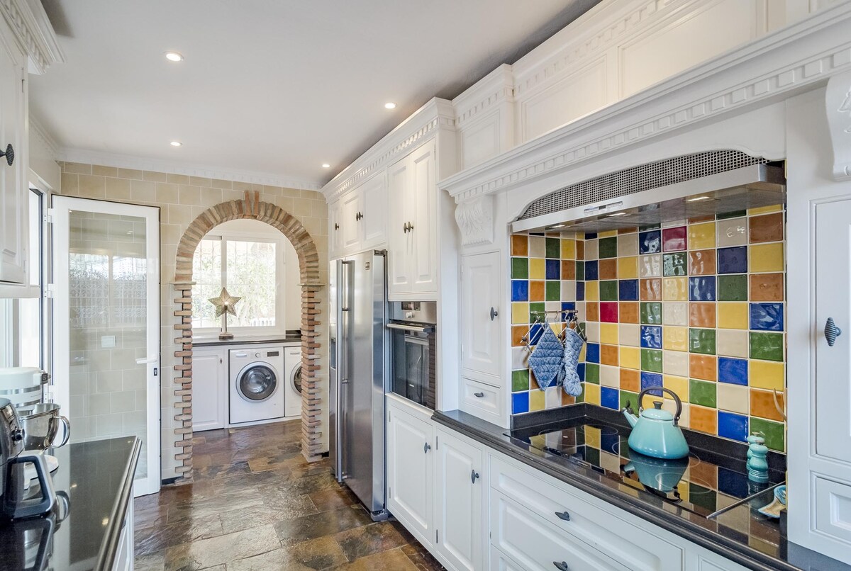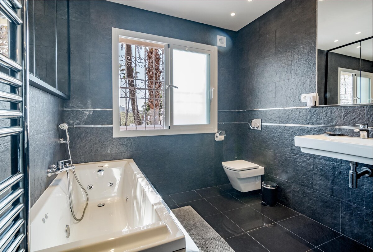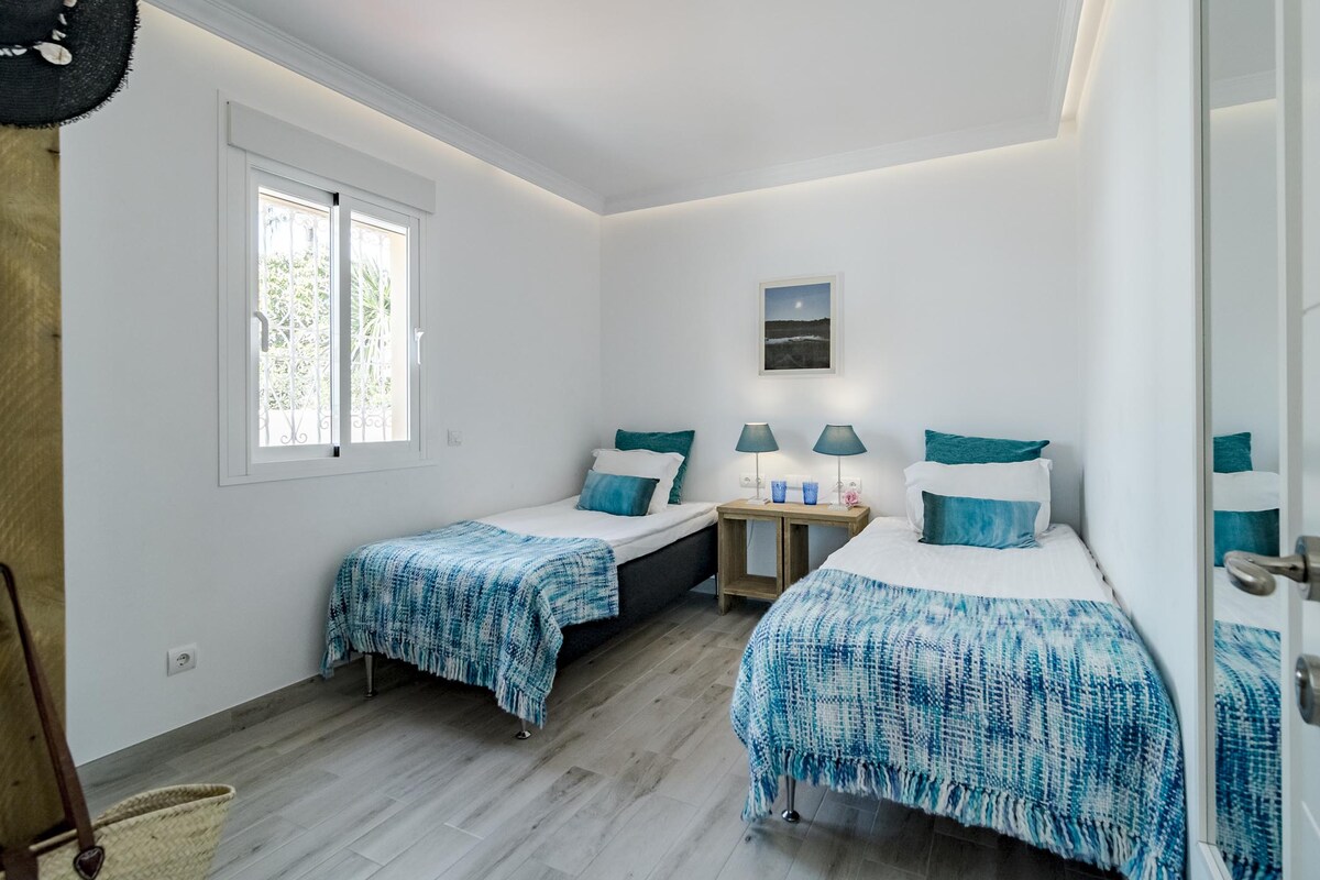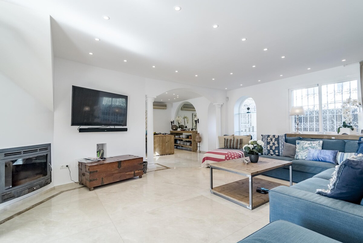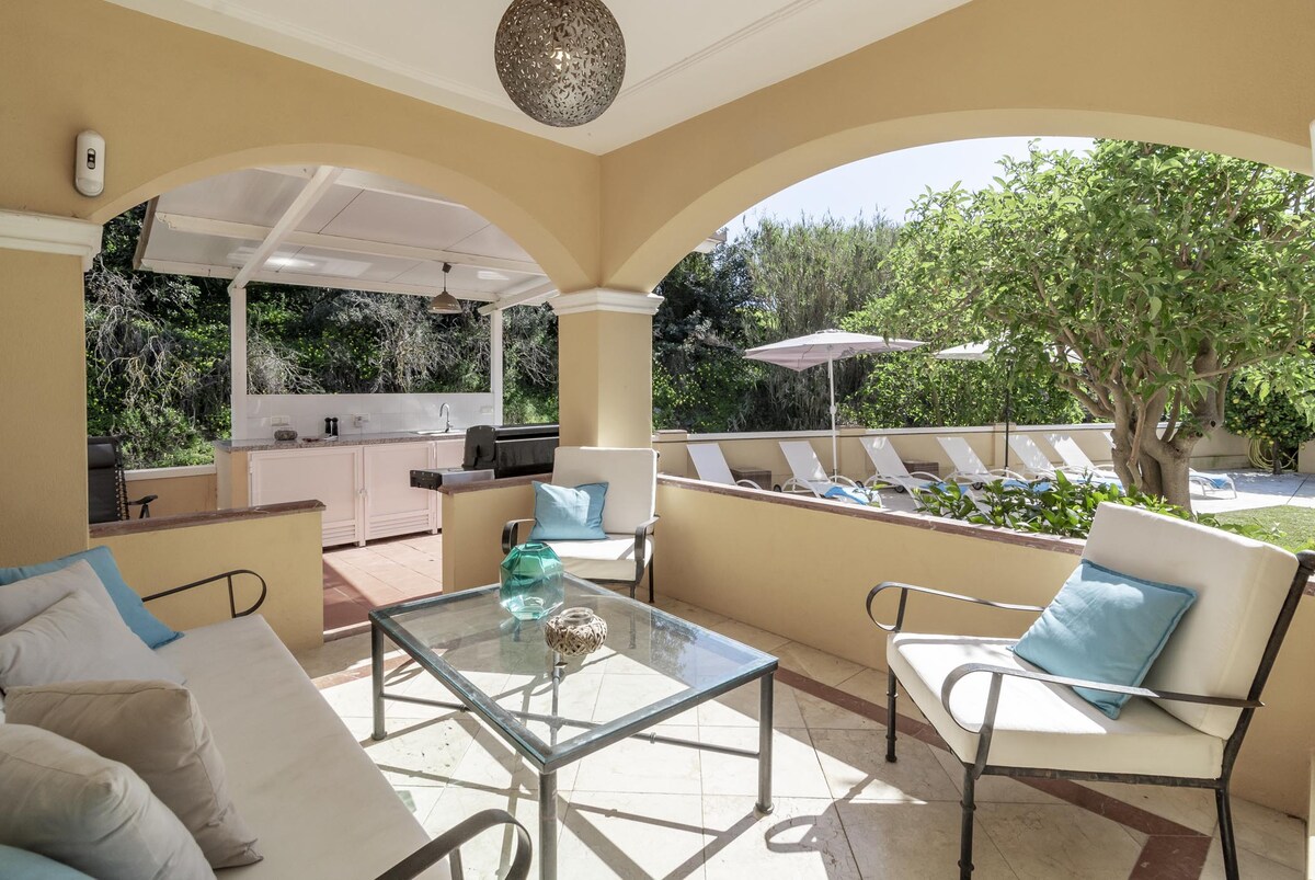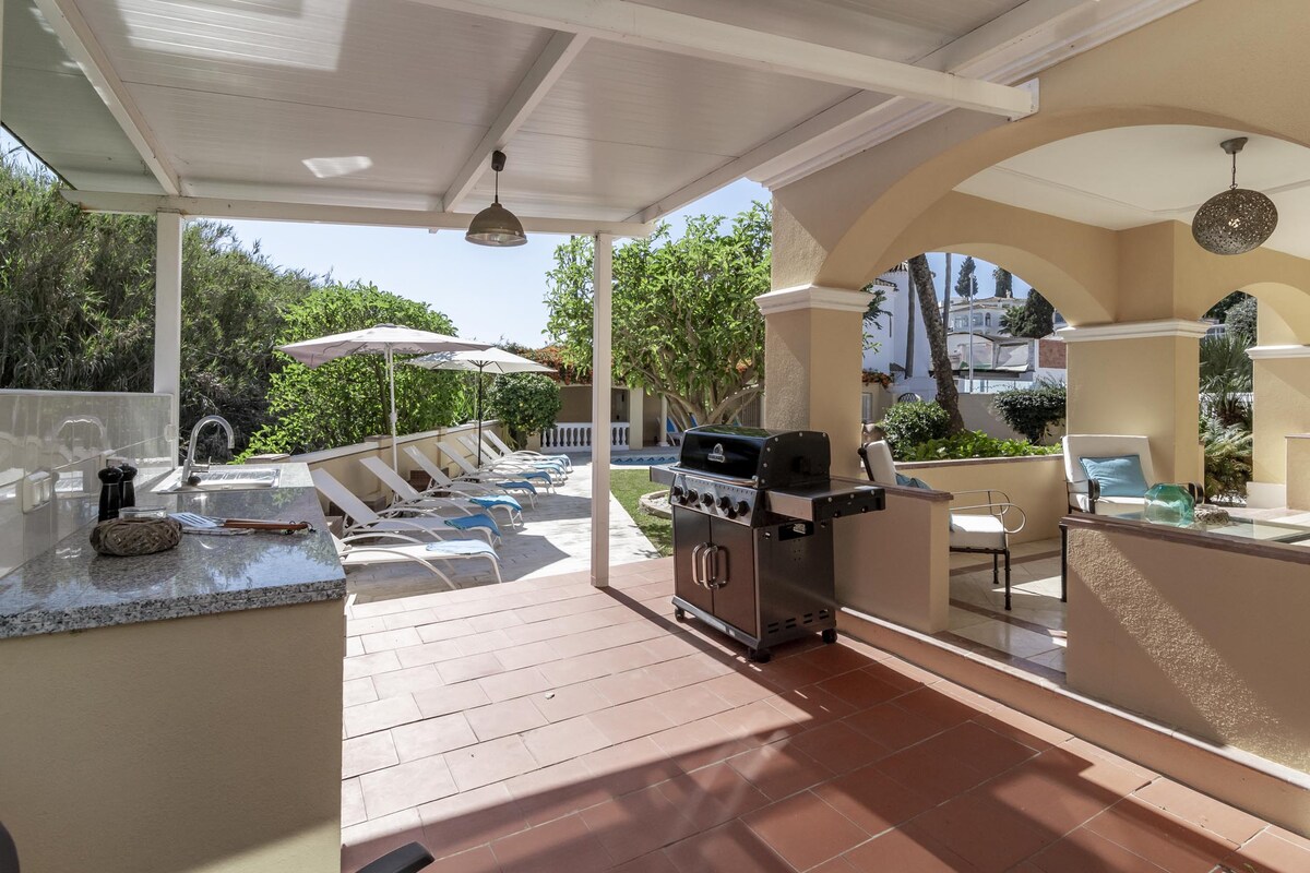 The house is situated in a family-friendly neighborhood in a residential complex. The accommodation is equipped with the following items: garden, garden furniture, fenced garden, 100 m² terrace, barbecue, fireplace, iron, safe, internet (Wi-Fi), hair dryer, balcony, gym / fitness centre, alarm, central heating, air-conditioned, private swimming pool, open-air parking the same building, 5 fans, 1 TV, tv satellite (Languages: Spanish, English, German, Dutch, French, Russian, Swedish, Norwegian). In the induction independent kitchen, refrigerator, microwave, oven, freezer, washing machine, dryer, dishwasher, dishes/cutlery, kitchen utensils, coffee machine, toaster, kettle and juicer are provided.The courtesy set is provided only for the beginning and not for the entire stay.