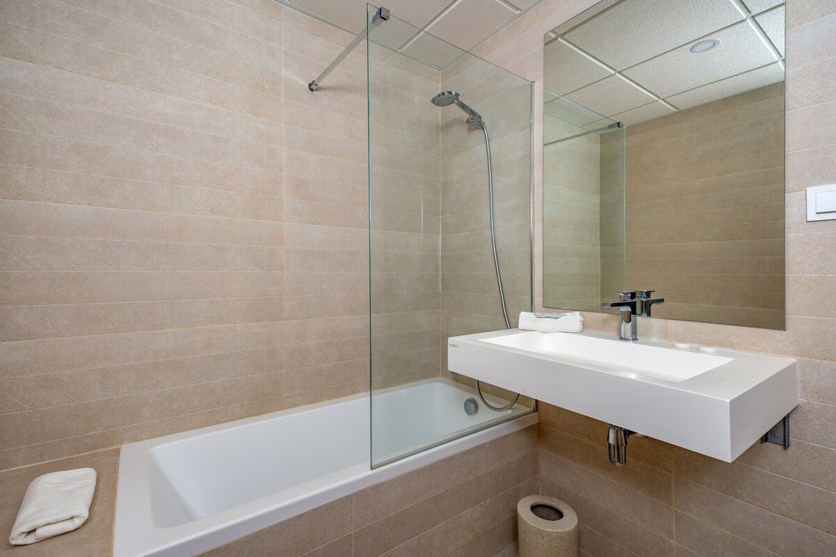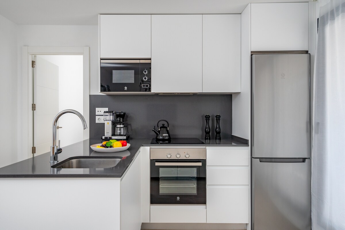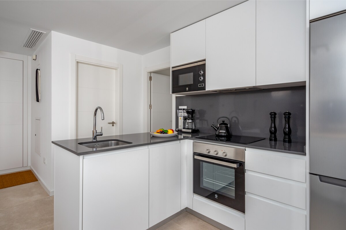 Nearby you also have supermarkets, restaurants, meeting places on the beach and much more. In the building there is also a community pool. There is also private parking in the garage. When you walk in the door, you're greeted by a brand new apartment home with an open floor plan between the kitchen and living room. The kitchen is fully equipped with a dishwasher, large fridge freezer, stove and oven, microwave, coffee maker, kettle, toaster and much more. Here you also have a breakfast bar. In the living room you have a comfortable sofa bed and a large smart tv. Further outside, on the balcony, there is a dining room with afternoon sun. The bedroom has a large comfortable double bed and its own cozy balcony with chairs. For the rest, the apartment is fully equipped with A/C in each room, private parking, community pool, dishwasher and washing machine, WIFI, Smart-TV and much more. The cleaning fee includes a set of sheets and towels per person. Pools have very different opening times, please inquire before the booking to make sure the pool is open during your stay.Other things to note