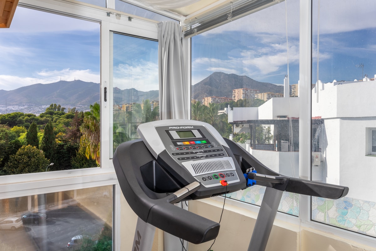 There is a fitness room with a private sauna as well as a treadmill and some loose weights, the treadmill is aimed at a fantastic view of the mountains of Benalmadena and Mijas.
