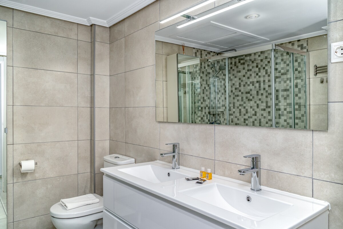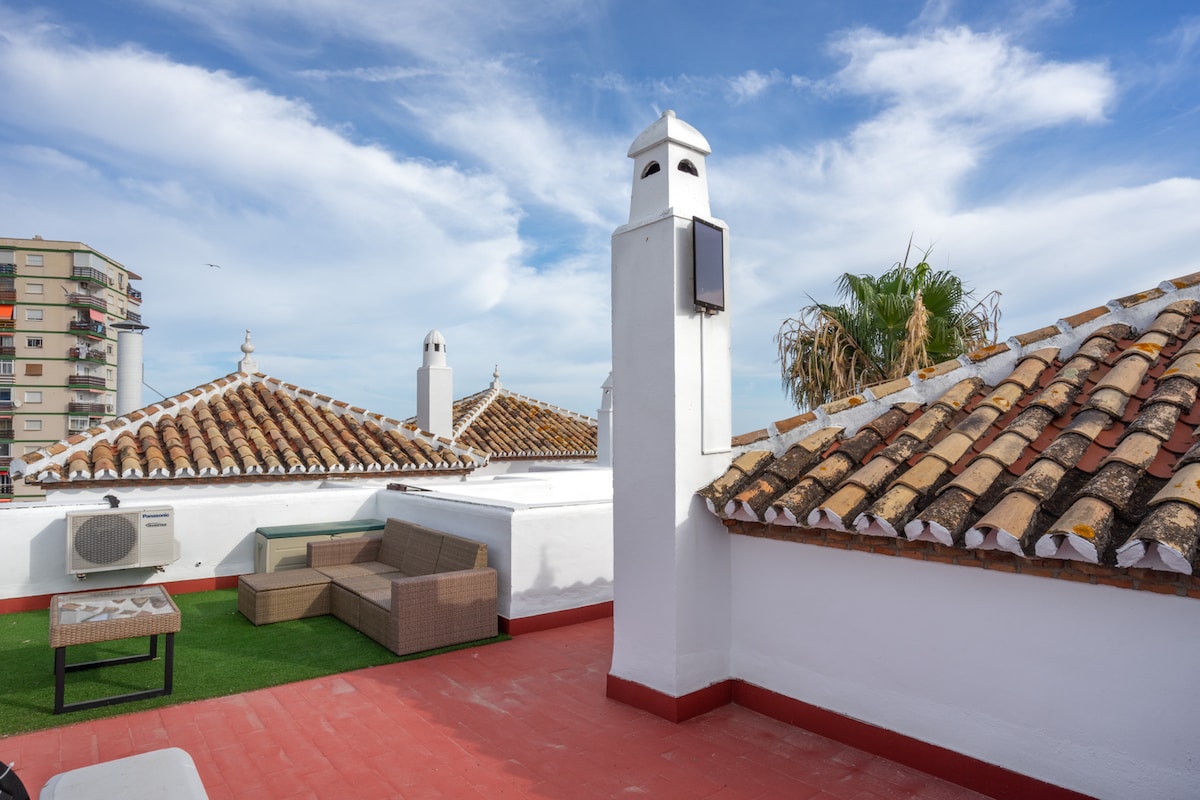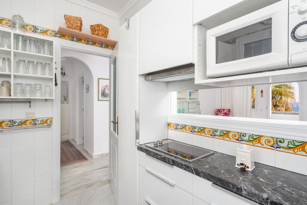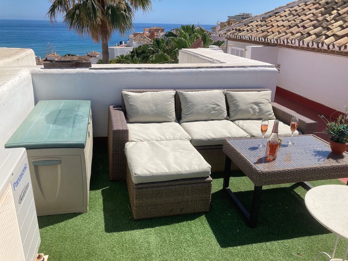 Welcome to Benalmadena and this nice apartment with its own sauna with treadmill, private roof terrace, shared pool and a wonderful view just minutes from the beach and all that the city has to offer.When you open the door, you are greeted by a bright and spacious apartment with a large hall and storage areas, a fully equipped and modern kitchen with dishwasher, stove and oven, refrigerator and freezer and microwave and kettle. The living room has a large Smart TV with international channels, fast internet via Fiberoptik and a large and comfortable sofa bed.