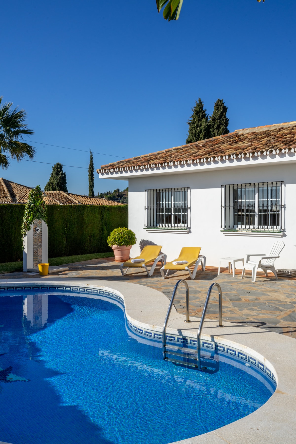 Franks villa was beautiful. It had everything you needed for a holiday. Communication was brilliant. It was very private and peaceful, mijas was a 4/5 minute drive which was perfect! The pool was a bit dirty when we arrived but one message and the pool people were there the same day! Couldn’t fault it. The only negative thing I could say was some rooms were a little dated and some outside furniture was a little worse for wear. We would love to come back next summer and already looking at dates! Thank you Frank