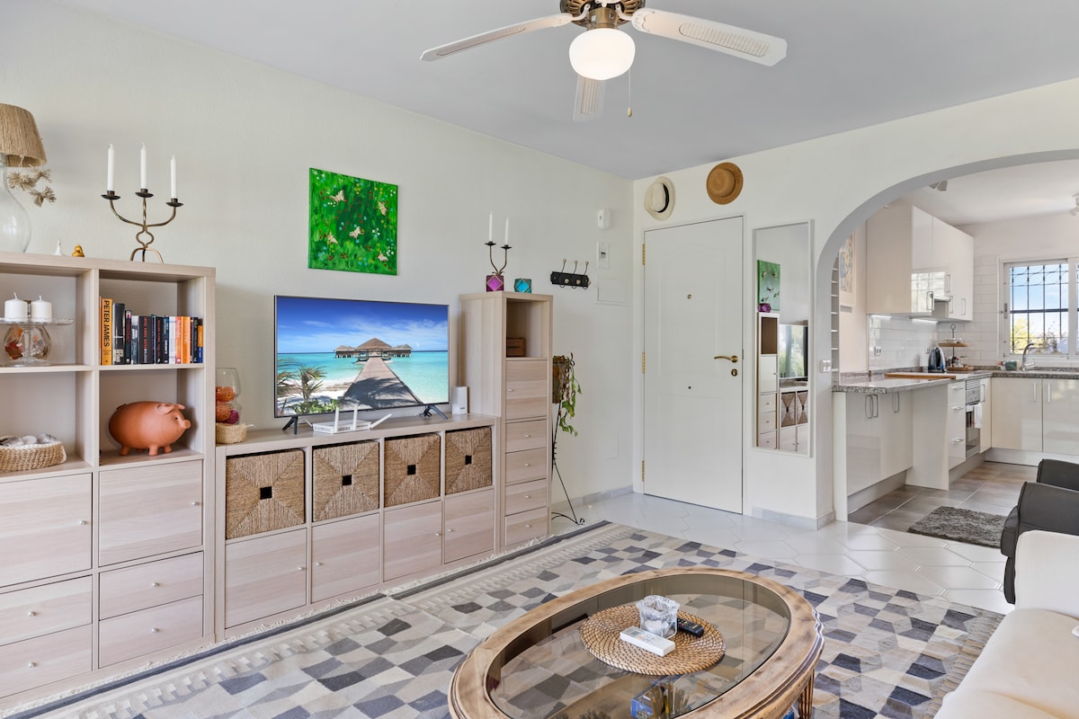 The place was ok but I wished that I had read more reviews before booking “Reservation at Garden & Pool apartment in Mijas.” The apartment is run as part of a management company. Reviews are not just for the property we rented but for many properties so it’s difficult to relate just to one. There are themes from other clients that should be noted: -Everything extra comes with a fee. -Very basic starter pack. -Leaving can be difficult and stressful. There were two of us but I had to run from the security gate (entry/exit to the compound) back to lock the keys in the house on leaving while my partner stood in the gate to stop it closing. If we hadn’t made it, I would have been locked inside the gate until another resident entered or left the complex. The place is in general need of decoration and although generally clean, there were very old cobwebs above the curtains. It was a very peaceful place to stay which we appreciated along with a plenty of equipment in the kitchen for cooking