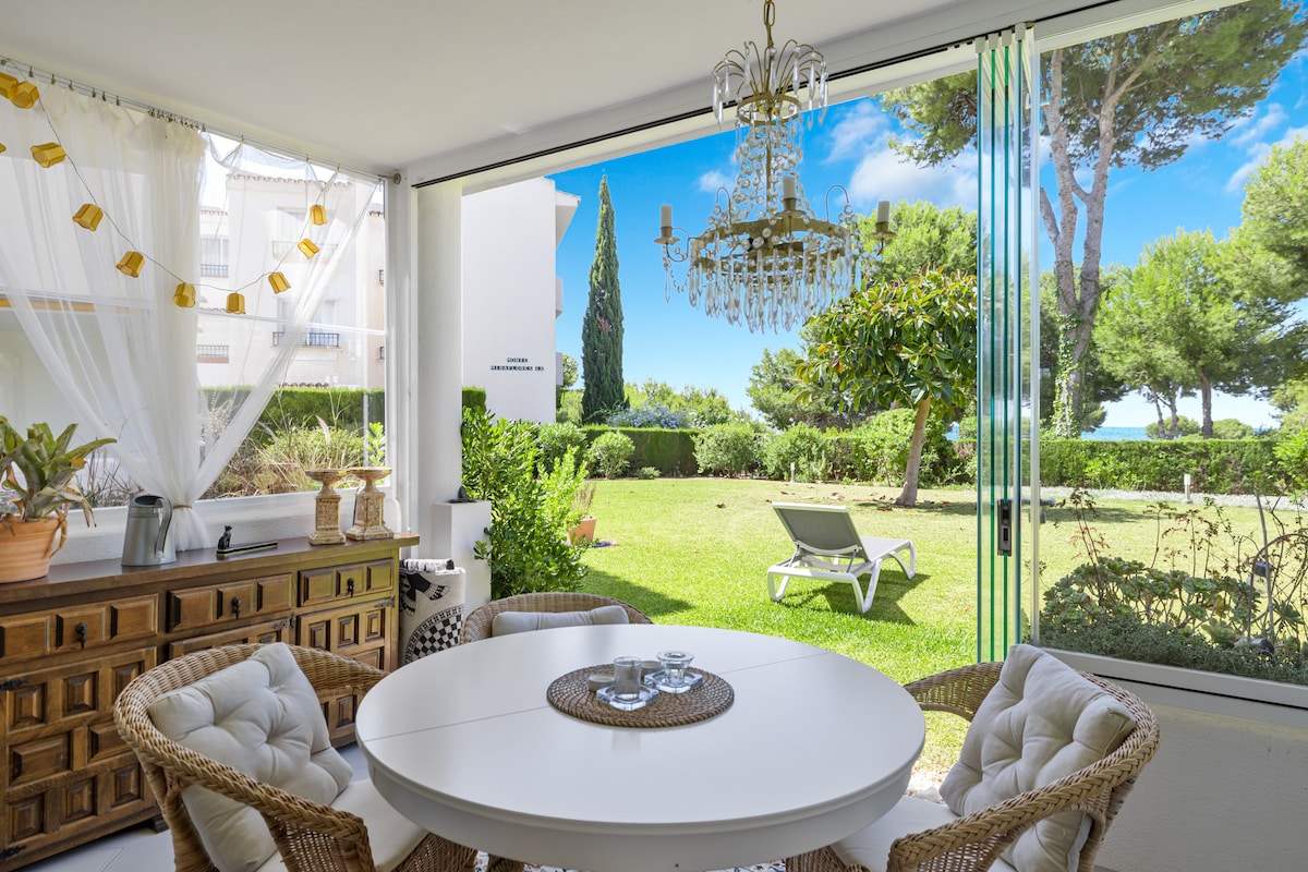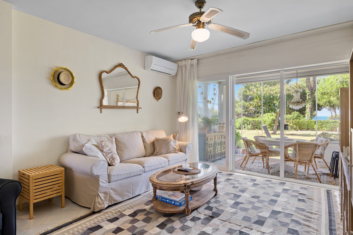 Designed for comfort and convenience, the apartment includes air conditioning, WiFi, a washing machine, and a private car park. The outdoor space is a true highlight, featuring a beautiful garden, a solarium, and access to a well-maintained pool, making it the perfect spot to unwind and soak up the sun.
