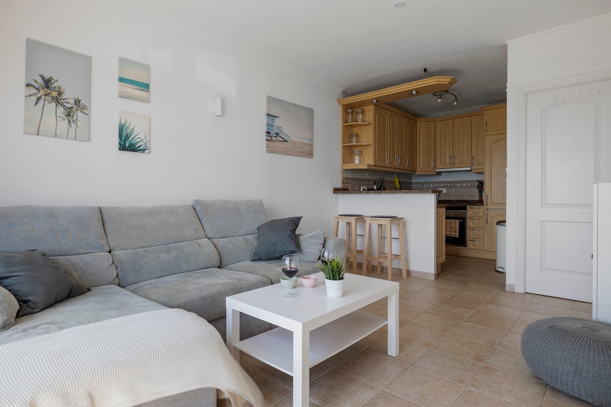 The apartment features two spacious and tastefully decorated bedrooms,with one bathroom for maximum privacy and convenience. The bright and airy living room is perfect for entertaining guests, with comfortable seating and a flat-screen TV. The fully equipped kitchen is perfect for preparing meals at home, with modern appliances and all the necessary cookware provided.The apartment also features a stunning balcony with breathtaking seaviews and afternoon sun, perfect for enjoying a glass of wine or a meal al fresco. The shared pool is a great place to cool off on hot summer days.