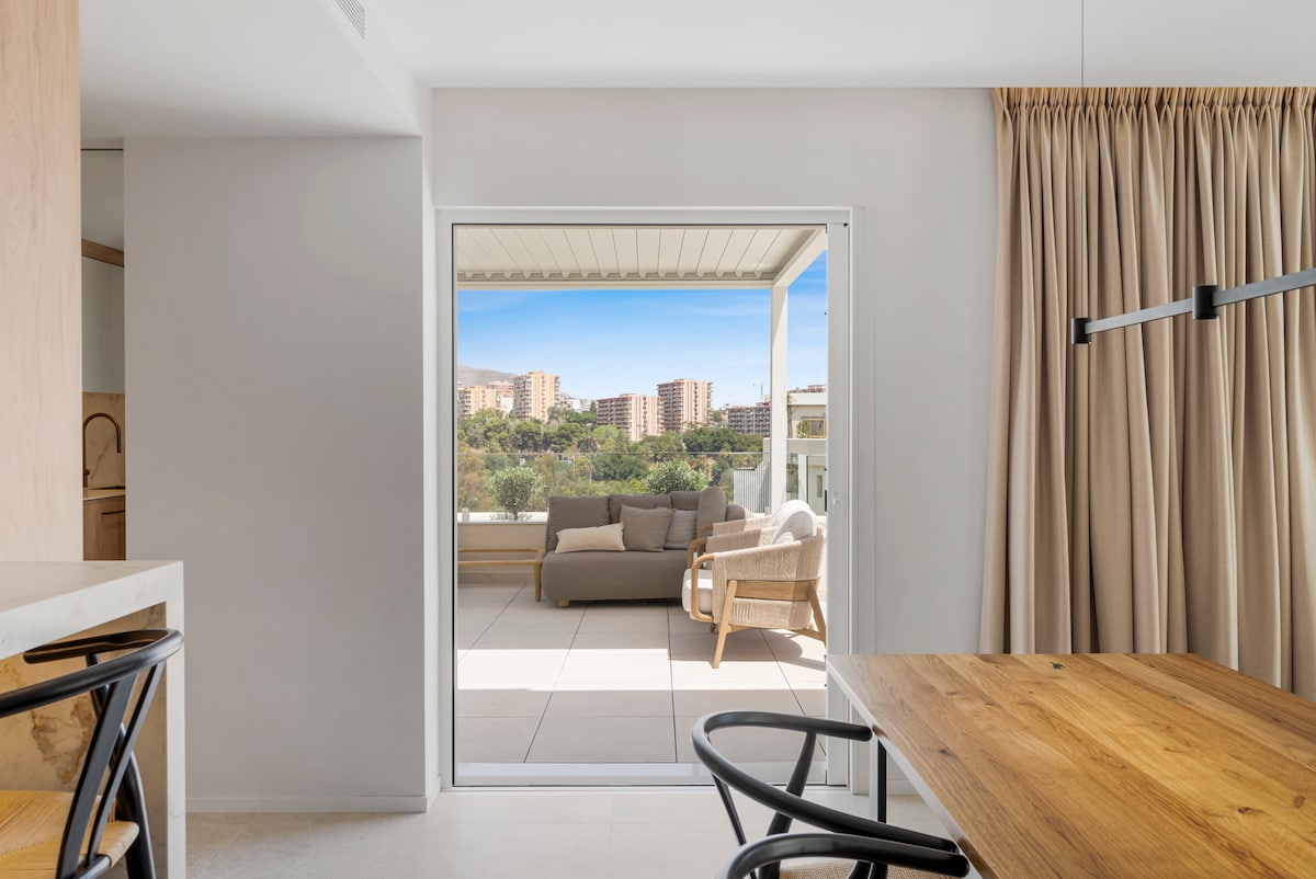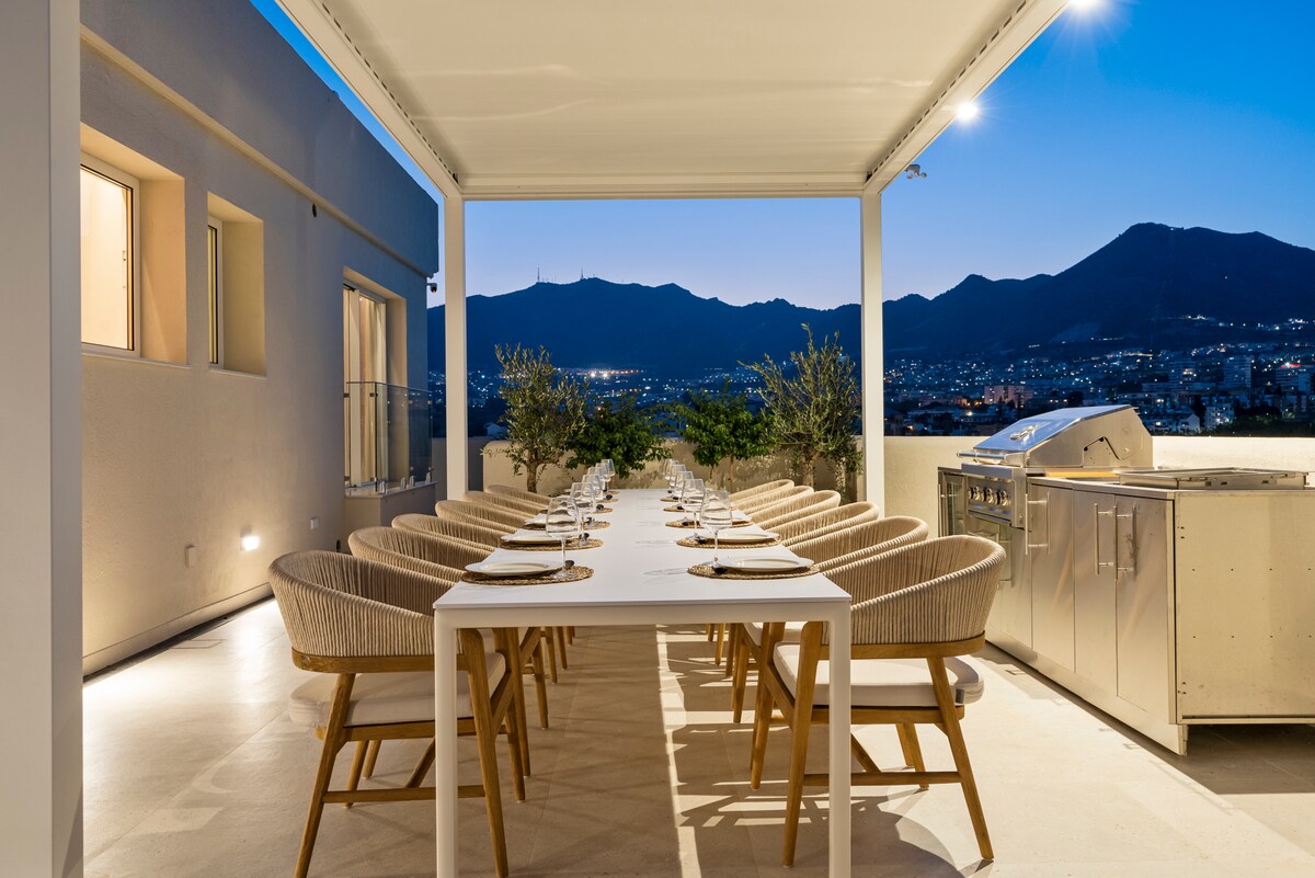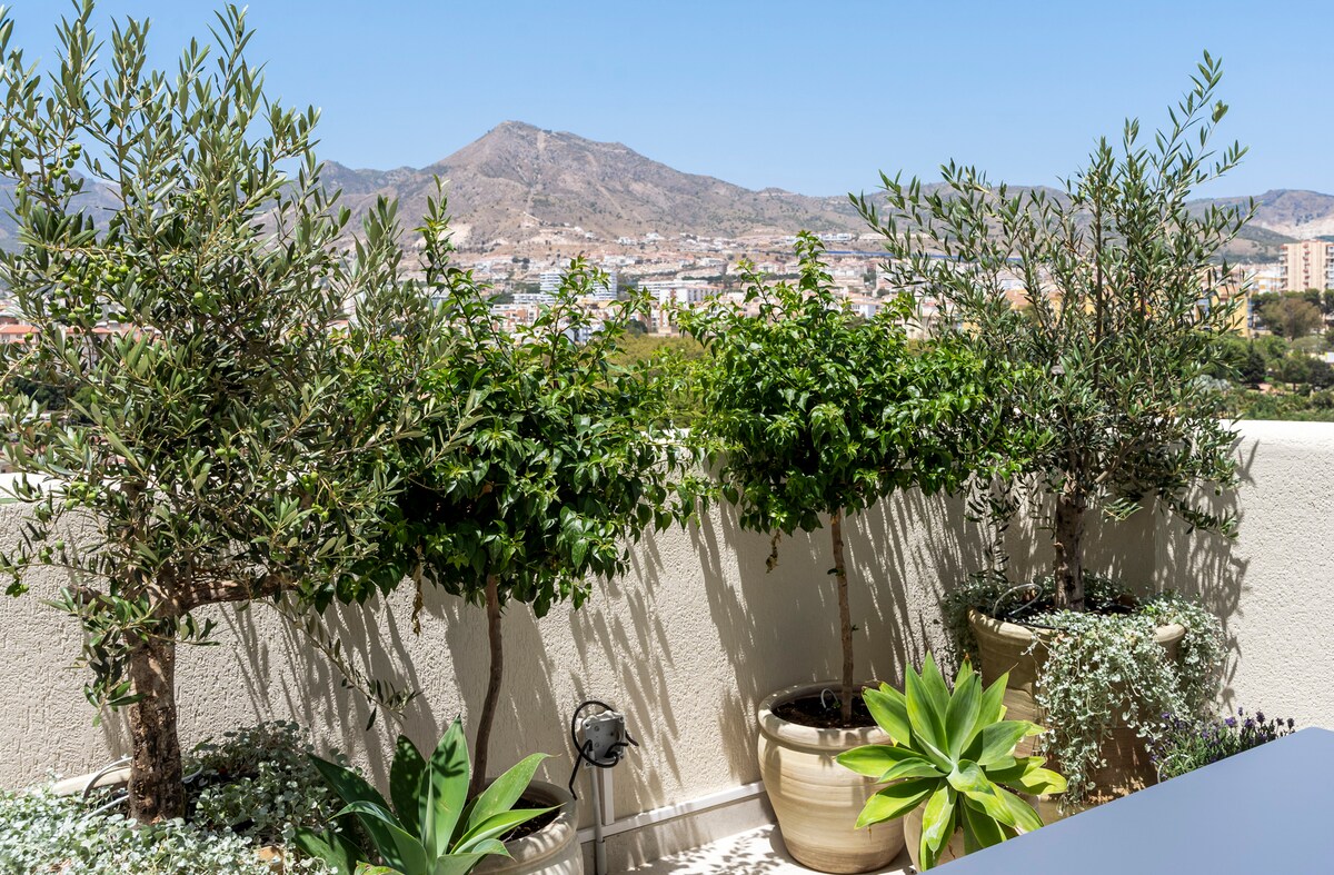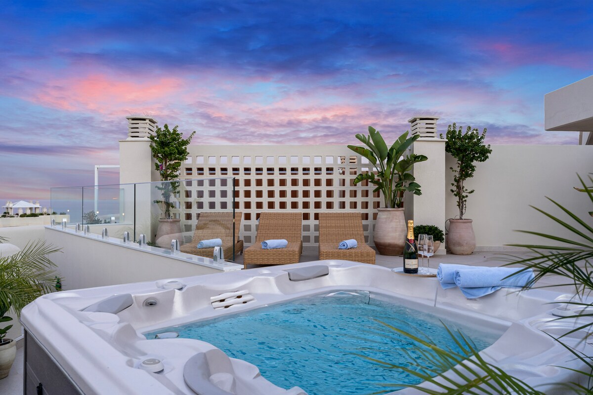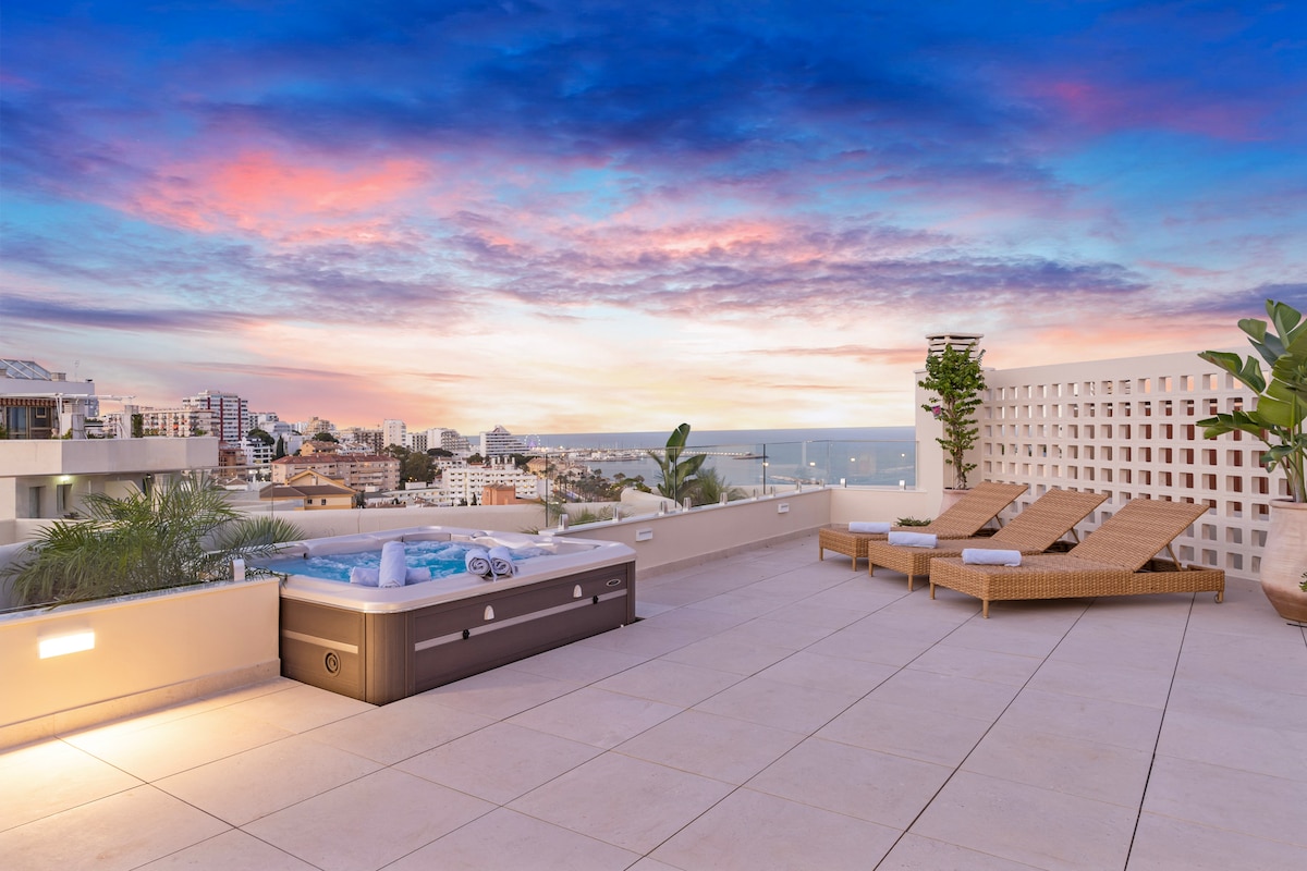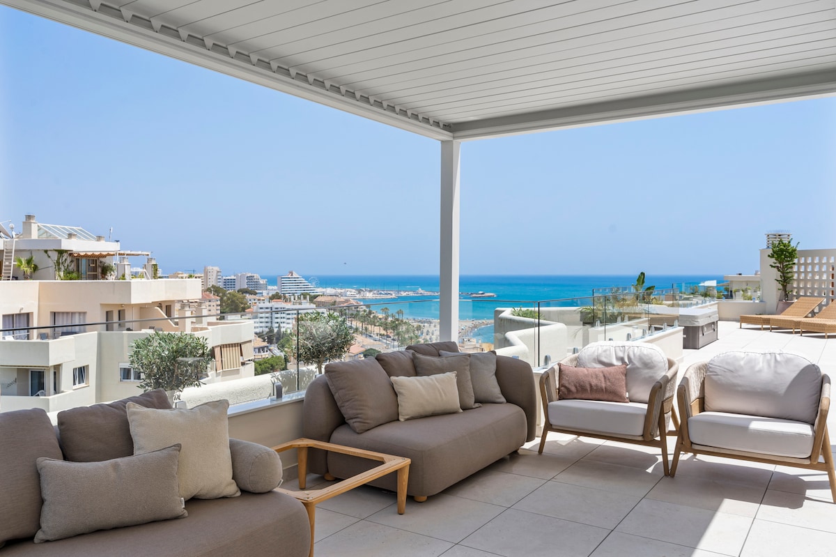 **Luxurious oasis on the coast of Benalmádena** Experience unparalleled luxury in this amazing penthouse in Benalmádena, offering breathtaking views and a serene, relaxing atmosphere. This high-finish residence features an stunning outdoor area exceeding 150 square meters, perfect for unwinding and entertaining. bask in the sun on comfortable sun beds, enjoy meals at elegant dining tables, or immerse yourself in the hot tub for relaxing moments under the stars.