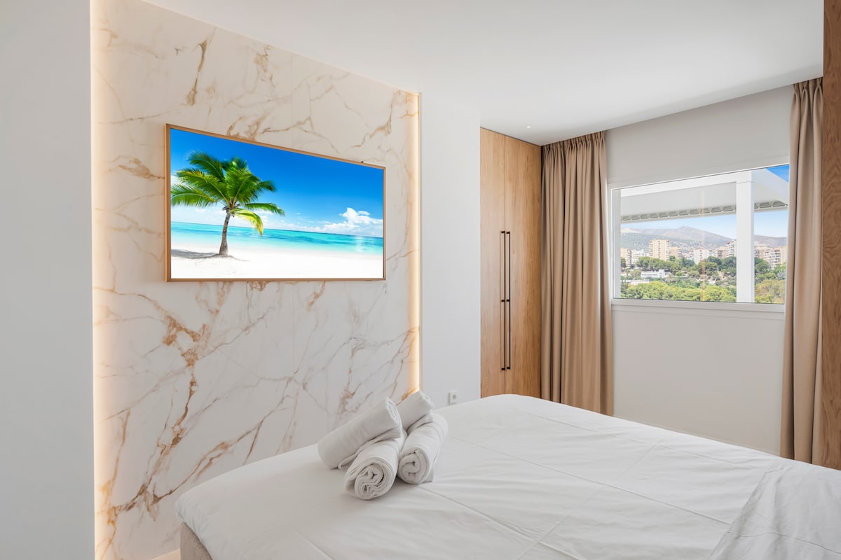 Take a leisurely stroll in the nearby park, enjoy a romantic promenade along the sea, or explore the beautiful harbor. Your perfect oasis awaits you. There is an elevator to the 11th floor but then there are 2 flights of stairs up to the apartment.Baby package €39: including crib and high chair, upon request and subject to availability.