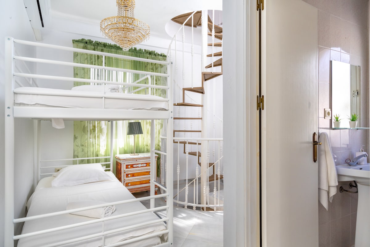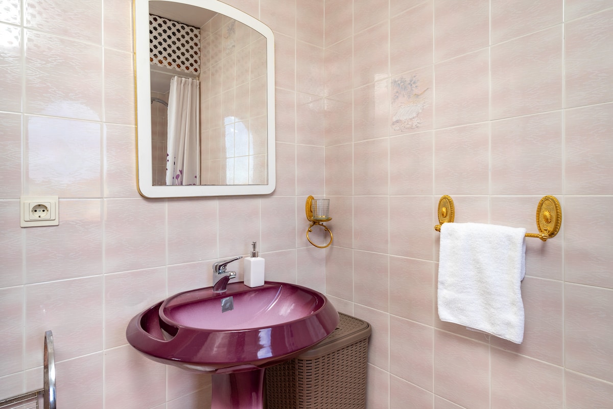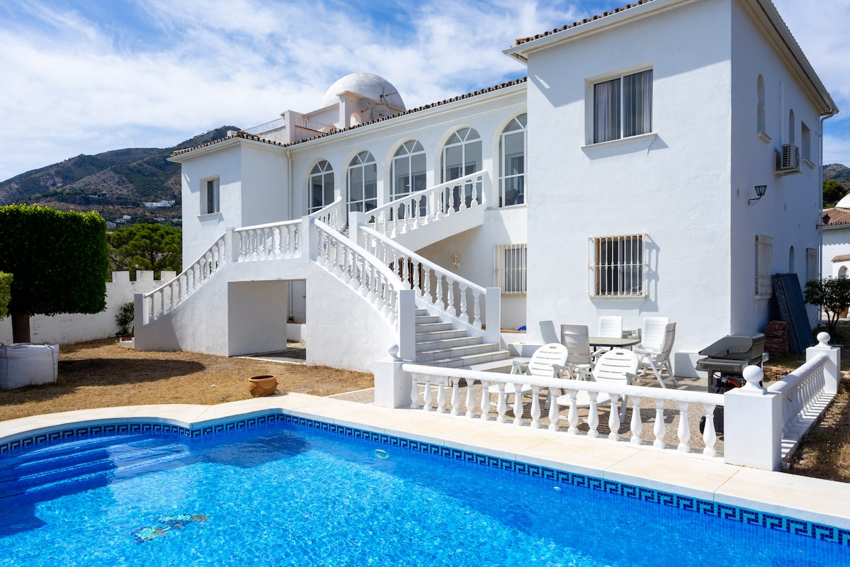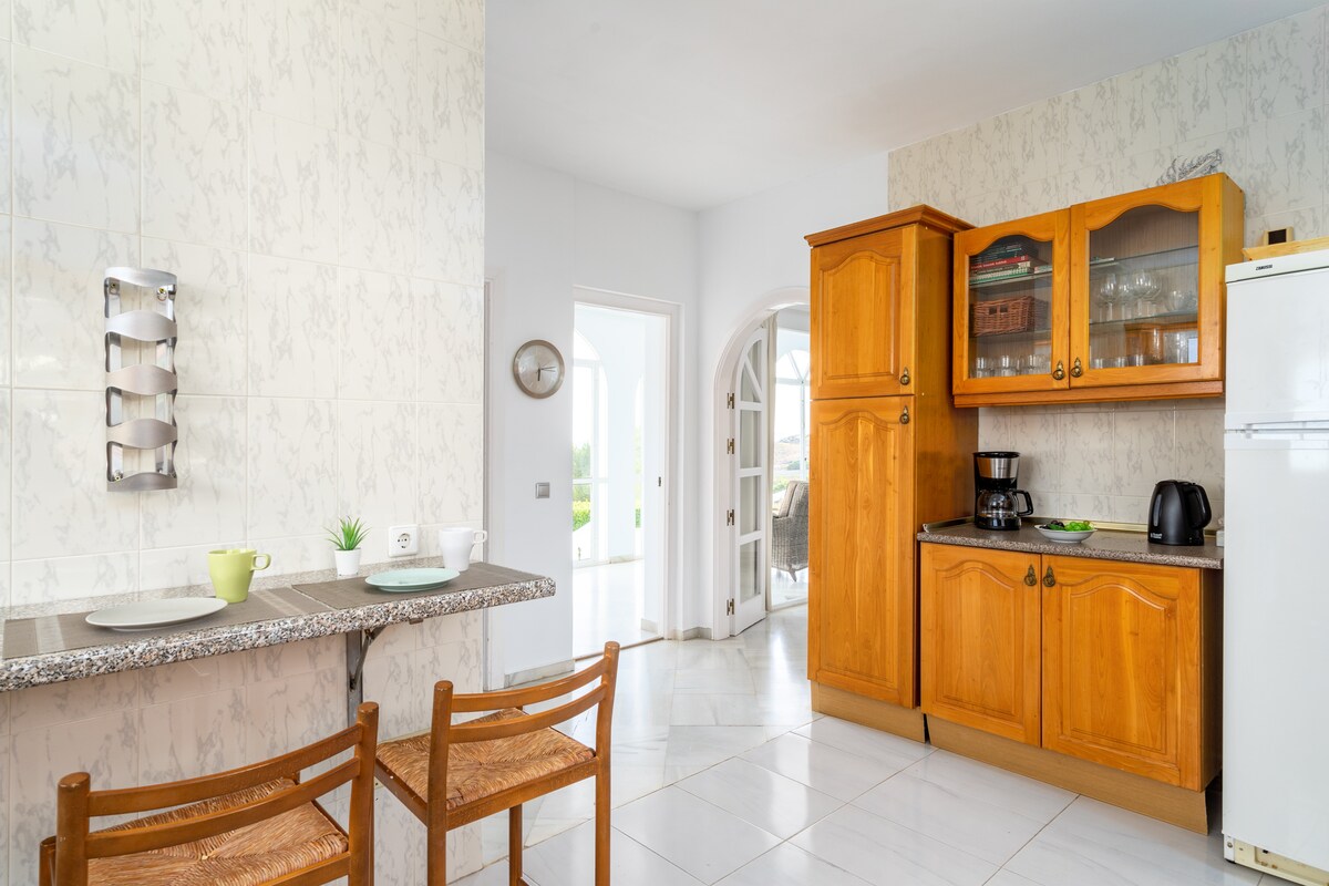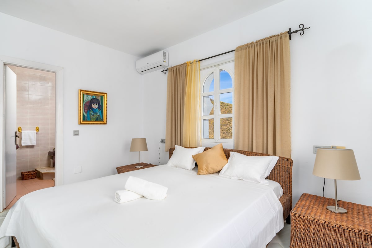 Further to the left is the fully equipped and large kitchen with a magnificent view of the mountains and the Mediterranean Sea, the kitchen is fully equipped with a dishwasher, stove and oven, fridge and freezer, coffee maker, toaster, microwave and much more. The conservatory between the garden and the living room is a place where you can relax and just look at the view before going down to the shared pool and garden. The pool and garden are shared only with one apartment, there is a barbecue area and several sunbeds. There are 4 bedrooms, one bedroom with a large double bed, the second bedroom with 2 single beds, the third bedroom with a bunk bed and upstairs is the fourth bedroom with 2 single beds and a private roof terrace. There are 2 large bathrooms with bath and shower. The house is otherwise fully equipped with A/C in every room, WIFI, flat screen TV, dishwasher and washing machine and much more. There is an inhabited apartment on the ground floor with a separate entrance that only shares the pool area and garden. The cleaning fee includes bed linen and towels in one set per person.Pool towels are available for rent, contact us for the price. Baby Package €39: including cot and high chair, on request and subject to availability. The courtesy set is provided only for the beginning and not for the entire stay.Pools have very different opening times, please inquire before the booking to make sure the pool is open during your stay.