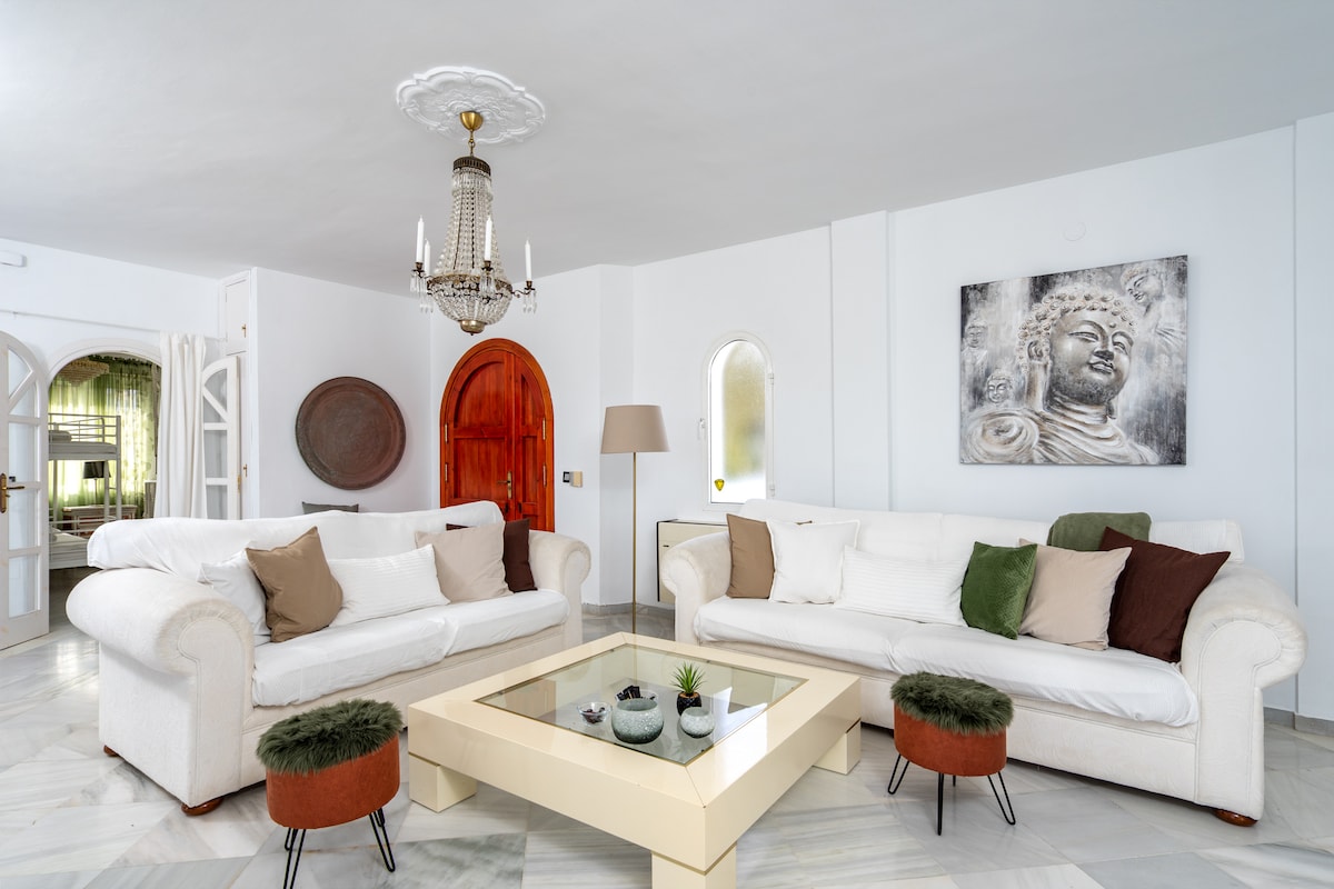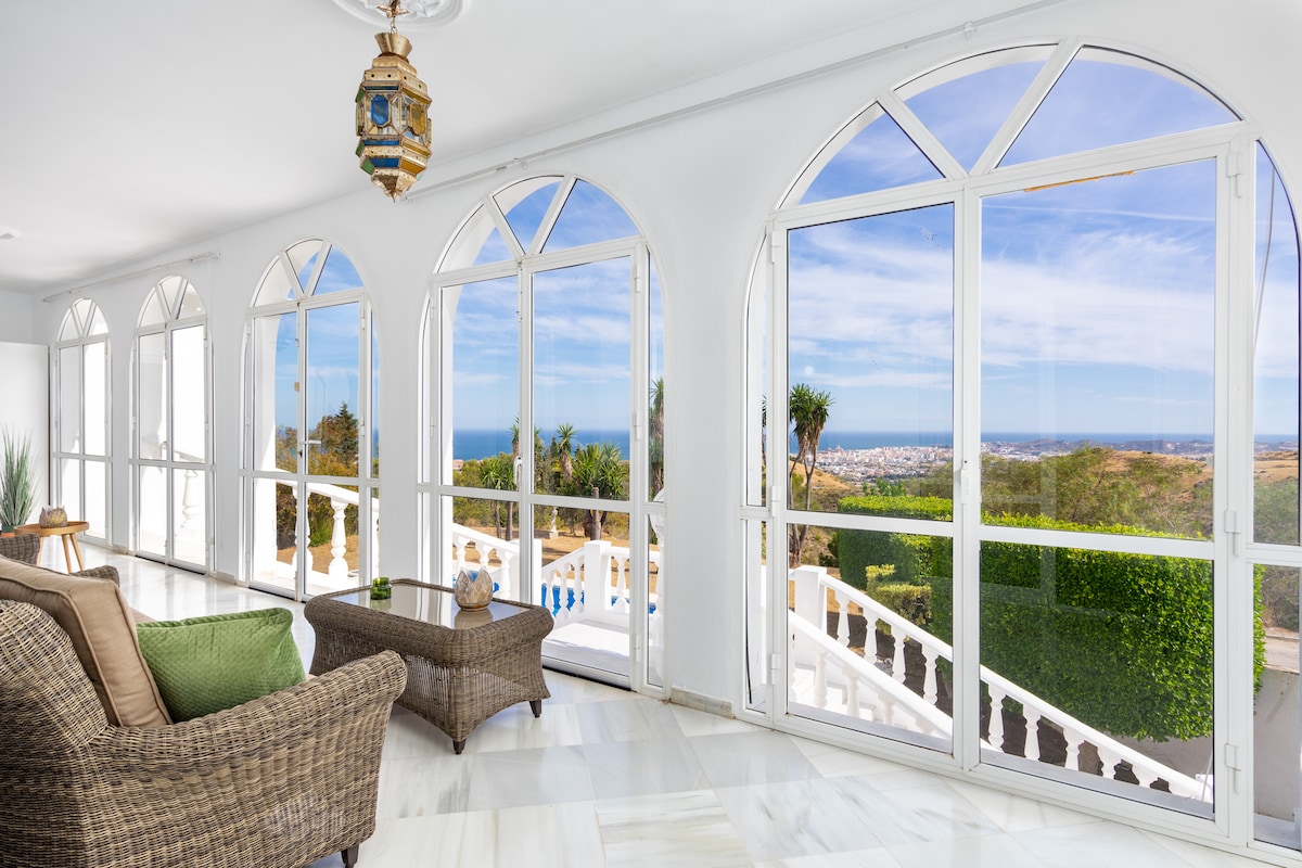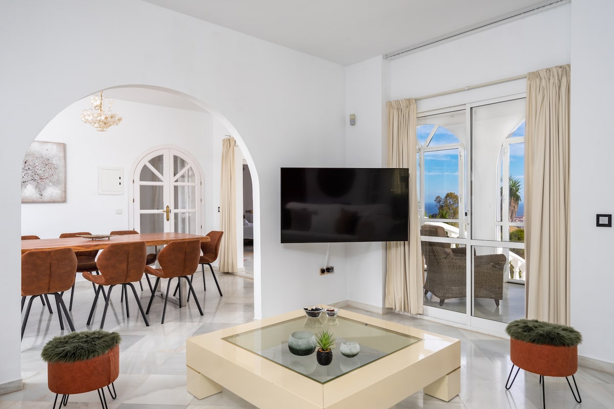 Welcome to this fantastic Apartment with an incomparable view of nature and the Mediterranean, located amidst the tranquility outside the Andalusian village of Mijas Pueblo which is only 10 minutes away by car. When you step through the doors, you are greeted by a light and airy living room with sofas and TV, to the left of the living room is the dining room with a long table and 8 seats.