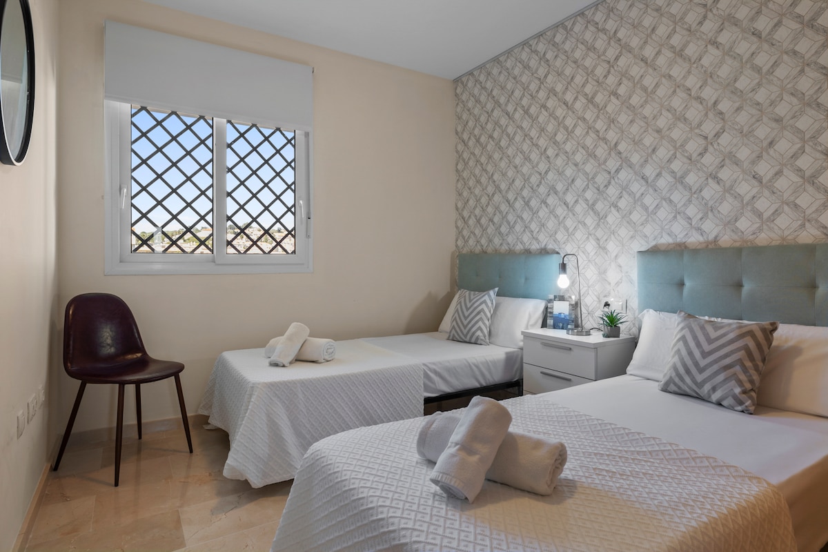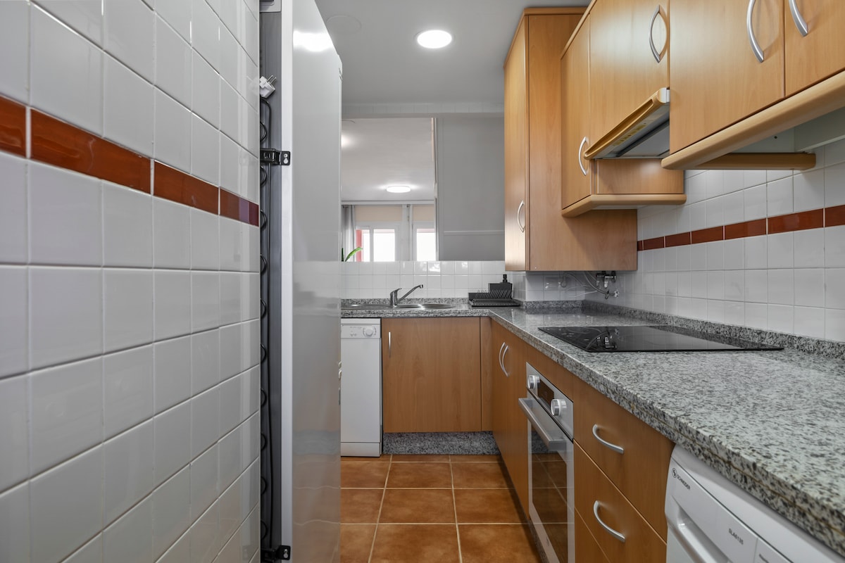 The apartment is fully equipped with modern amenities including a smart TV, excellent WiFi, washing machine, dishwasher, coffee machine, toaster and boiler. You'll have everything you need for a comfortable stay.The urbanization offers additional perks such as a paddle court, swimming pool, and separate pool for kids, as well as a children's playground. Paddle paddles are available. Plus, you'll find convenience right at your doorstep with a small supermarket and restaurant downstairs, and the beach just a 5-minute walk away.