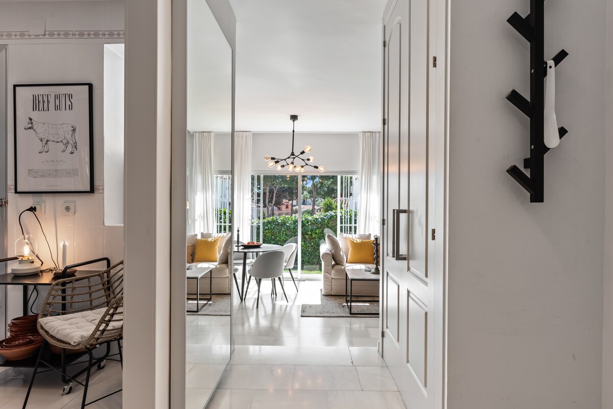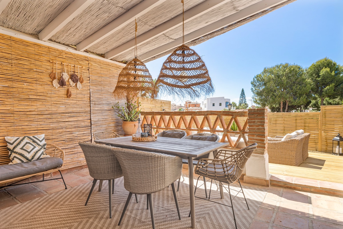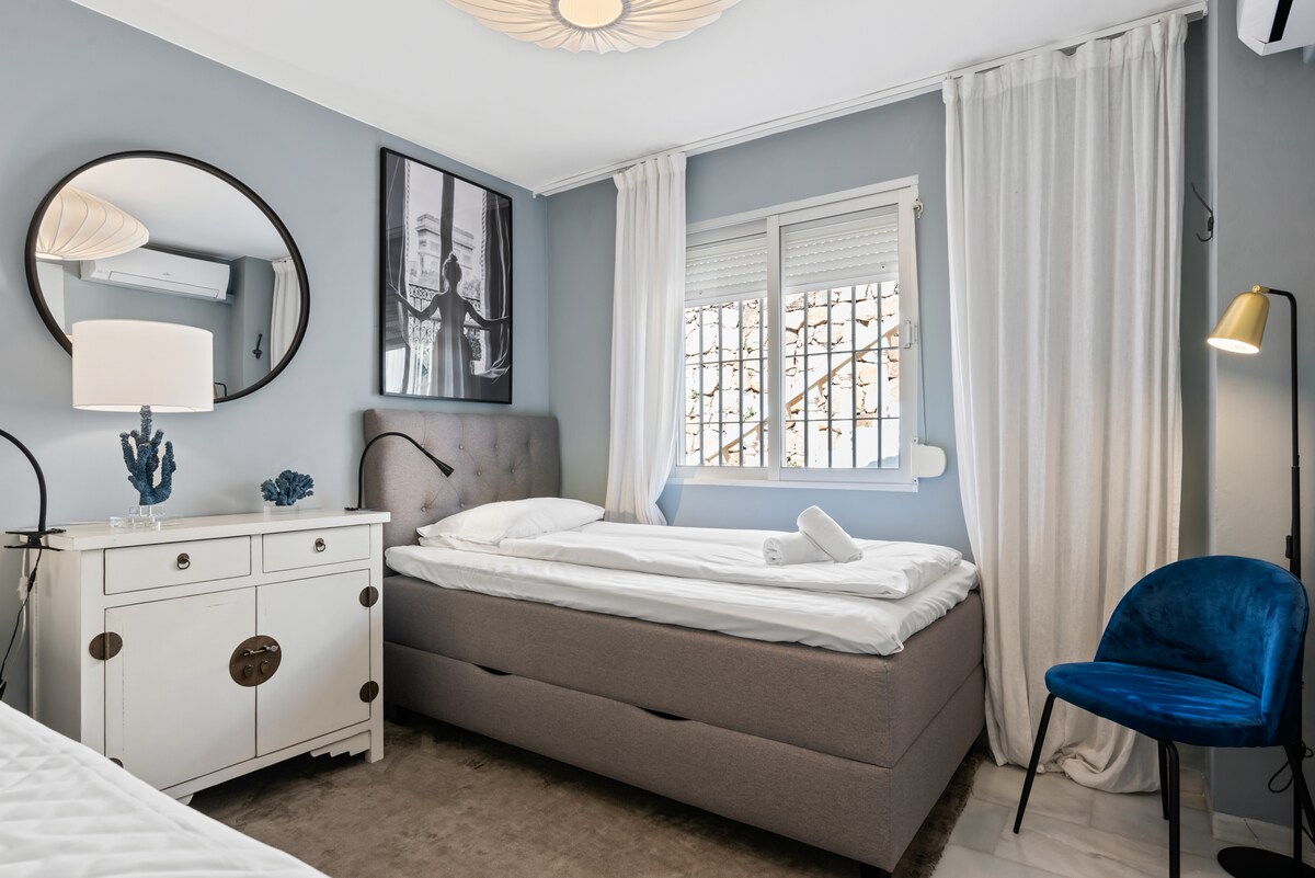 3 rooms apartment in Mijas on the ground floor, comfortable and bright. The kitchen is complete with accessories, dishes and appliances: oven, microwave and dishwasher. The sleeping area consists of 2 bedrooms with 4 single beds. The house is non-smoking only and is equipped with air conditioning, wifi and washing machine.