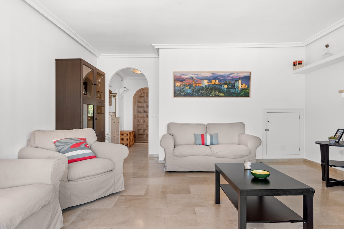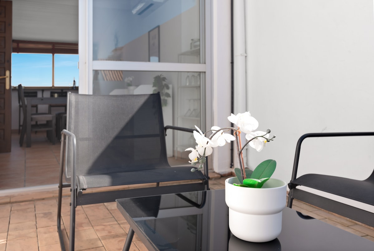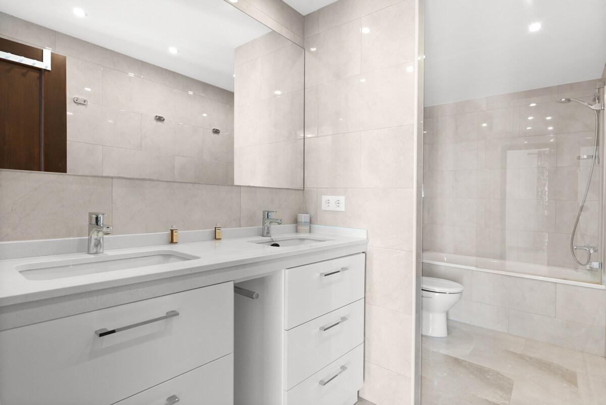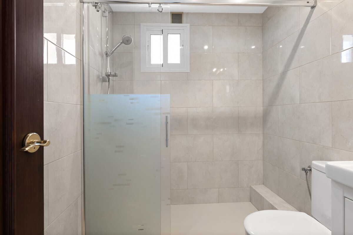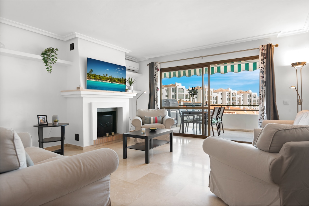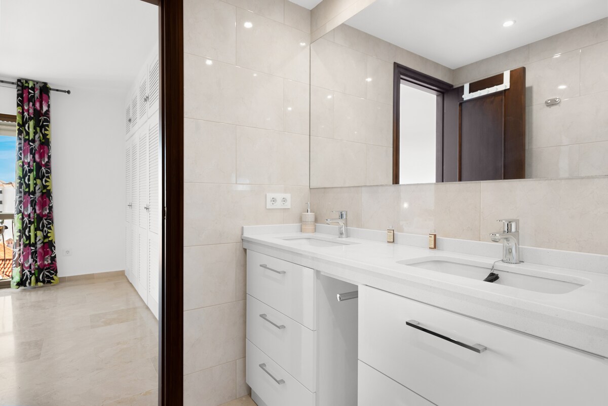 The area around the apartment is a quiet residential area with only 500m to Puerto Estepona (harbour) and 400m to Playa del Cristo which is a popular beach with lovely beach restaurants. A short walk from the apartment there is also a padel facility with 10 courts and a gym. Nearby there are also several wonderful markets every Wednesday 9-13:00 and Sundays 8-14:30 in the bullring.When you step through the door, you are greeted by the fully equipped kitchen on the left, with dishwasher, kettle, toaster, coffee maker and everything you need to be able to cook on holiday. Straight ahead you enter the spacious living room with a large smart TV, comfortable sofas and armchairs and a lovely terrace with a wonderful view of the mountains and the sea. There is also a toilet.