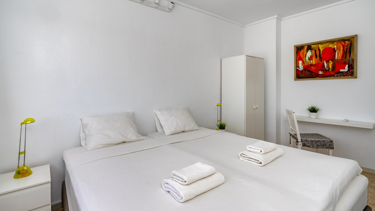 The apartment is run by an agency. We collected the keys from the office but on arriving realised we didn’t have details of which apartment was our rental. After a phone, call and trip back to the office Magnus sorted it out for us. The apartment is light, bright, airy and spacious. It was quiet, but also situated in an excellent position on the seafront amid cafés and shops. Despite a week of heavy rain and cloud. it was still refreshing to sit on the balcony with views of the mountains and skyline. Plenty of facilities, available ie washing machine, dishwasher and TV if you have the need to utilise them. Everything was very clean. The beds were comfortable and the bedding pristine. Unfortunately our flight changed from morning to evening. Thankfully however we were able to extend checkout for a further 7 hours at a cost of €69. This made all the difference. so thank you Sofia. To conclude, we loved this apartment and would highly recommend it