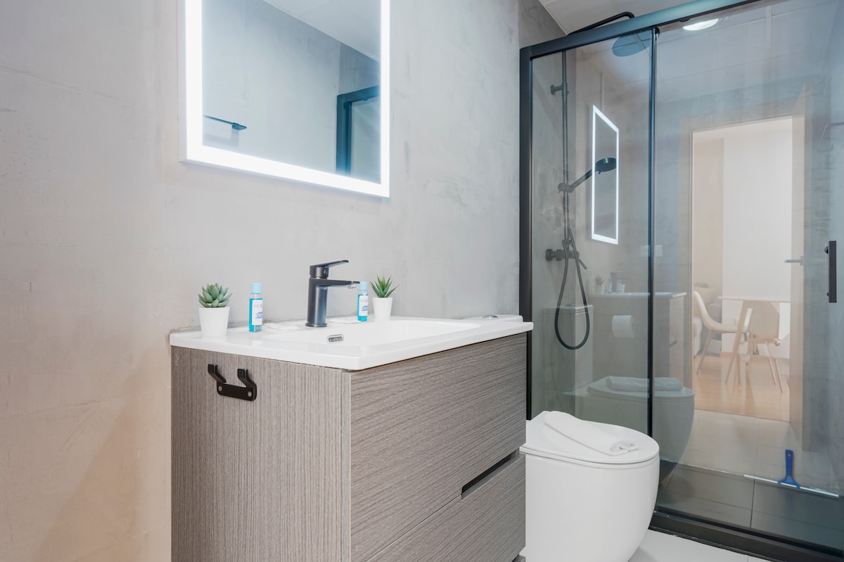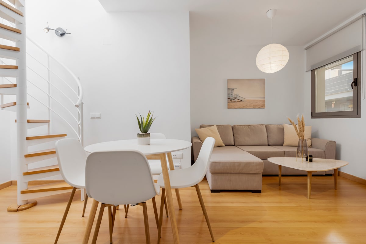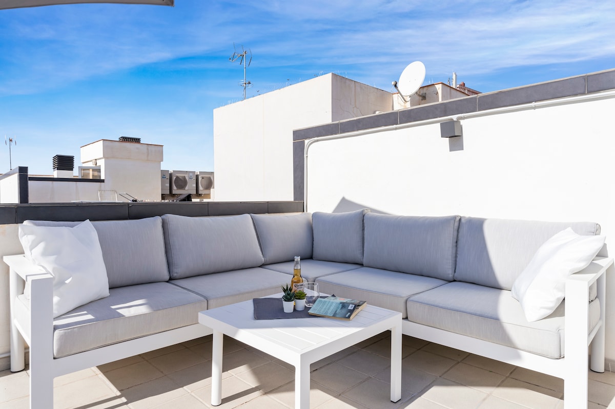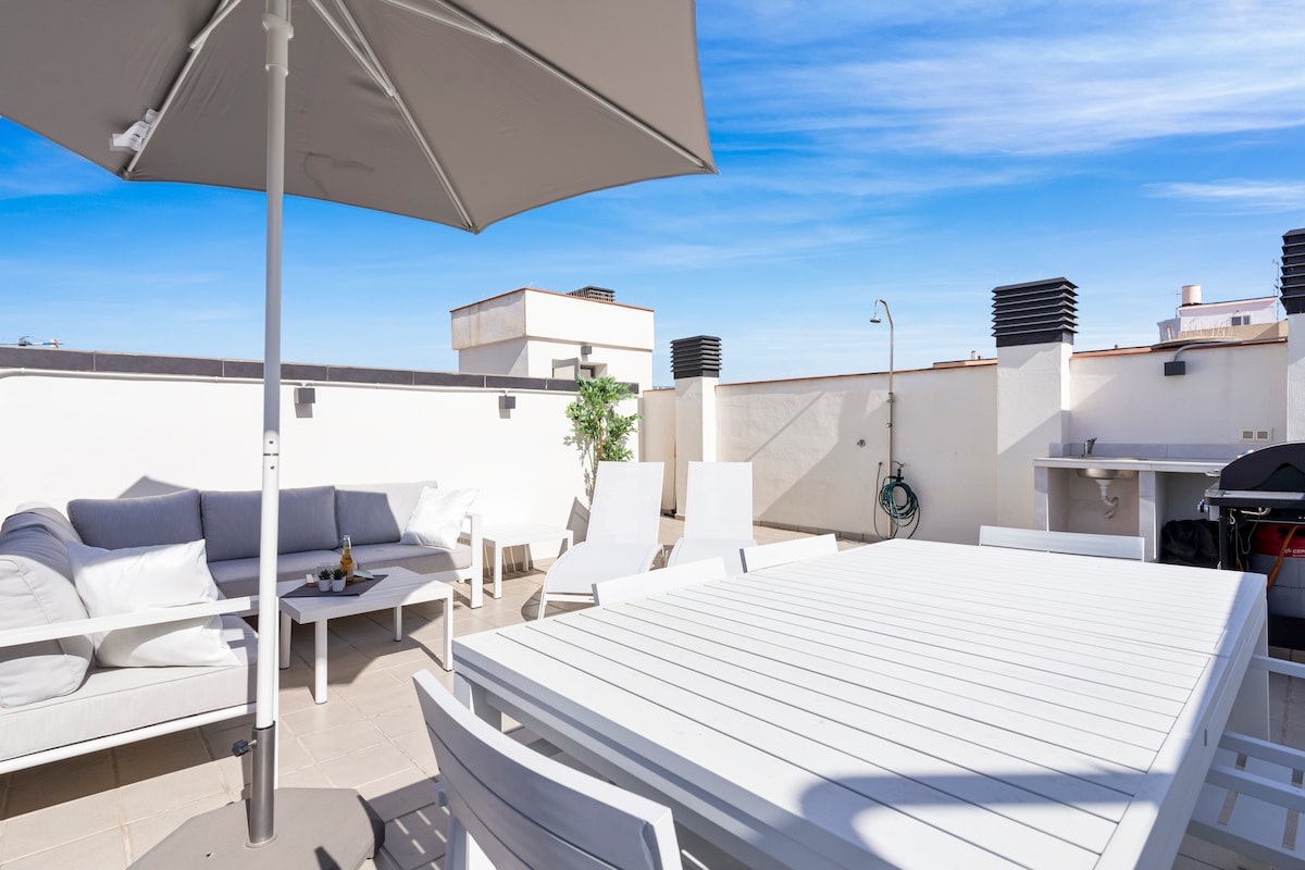 The apartment features a cozy bedroom (overlooking the patio and 1 bathroom, fully stocked with bed linen and towels for your comfort. The living space is equipped with a TV and a dining area, leading to a fully equipped kitchenette, making it easy for you to prepare and enjoy your meals. The crown jewel of this top floor apartment is its terrace, offering breathtaking city views, complete with an outdoor dining area where you can savor the ambiance of Málaga’s picturesque surroundings.The cleaning fee includes a set of bed linen and towels per person