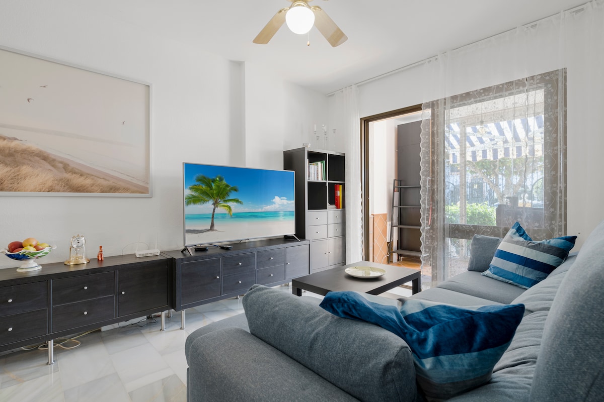 The sleeping area consists of 2 bedrooms with 1 double bed and 2 single beds, can accommodate up to 4 people. The outdoor space consists of the garden and enriched by outdoor dining area and solarium. Libra sunny apartment in Mijas - Ref 18 also offers: television. Baby Package €39: including cot and high chair, on request and subject to availability.. Check-in: Arrivals before 4pm and departure after 10am can be requested to our customer service and are subjected to availability.The courtesy set is provided only for the beginning and not for the entire stay.