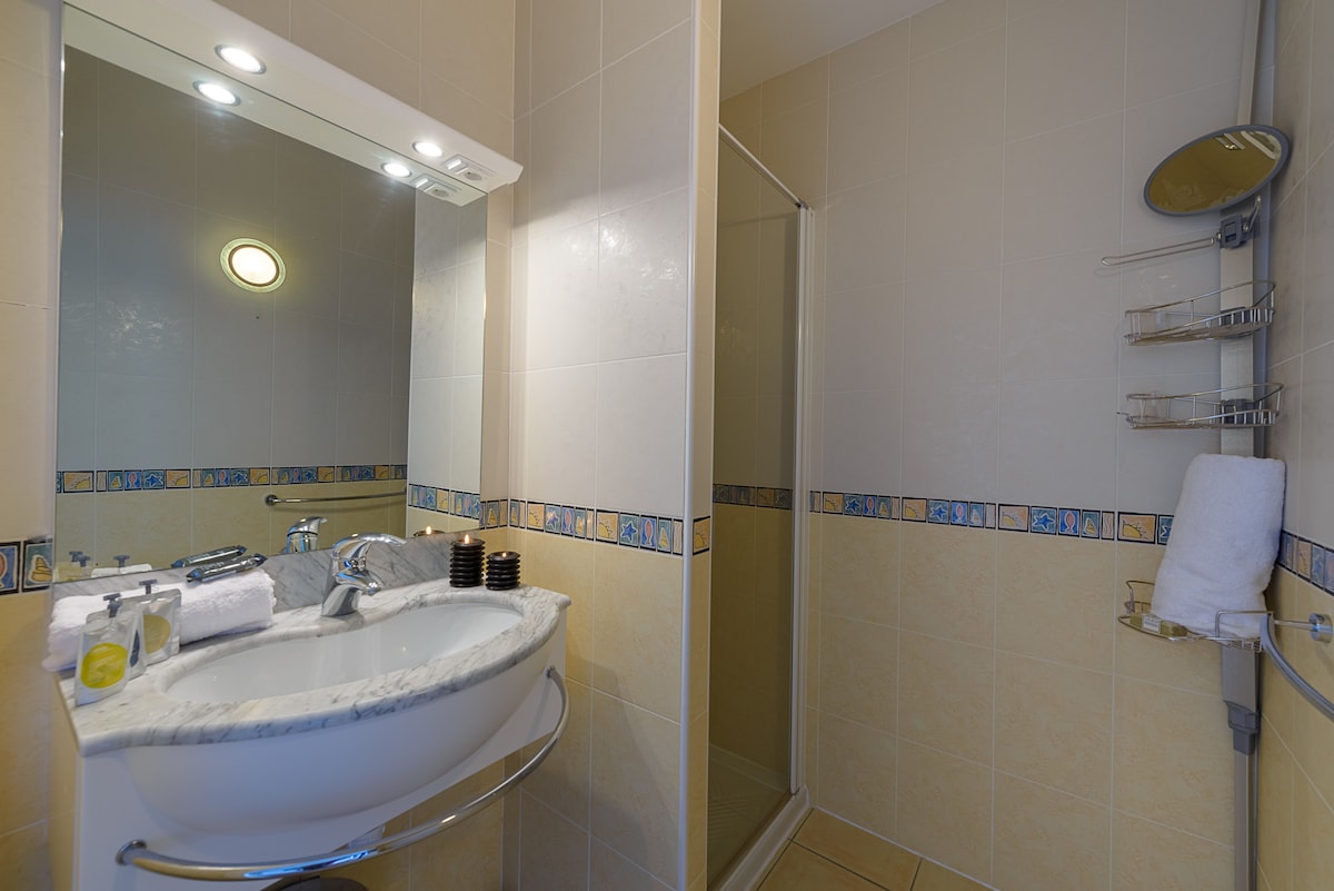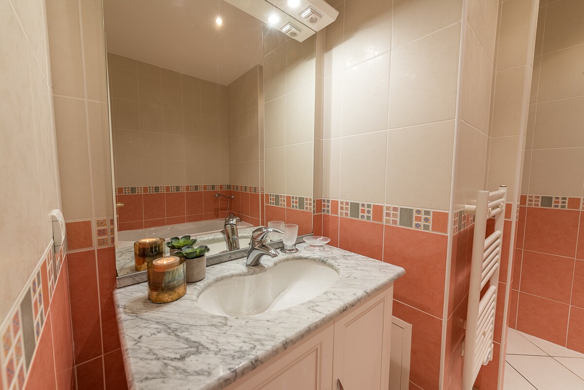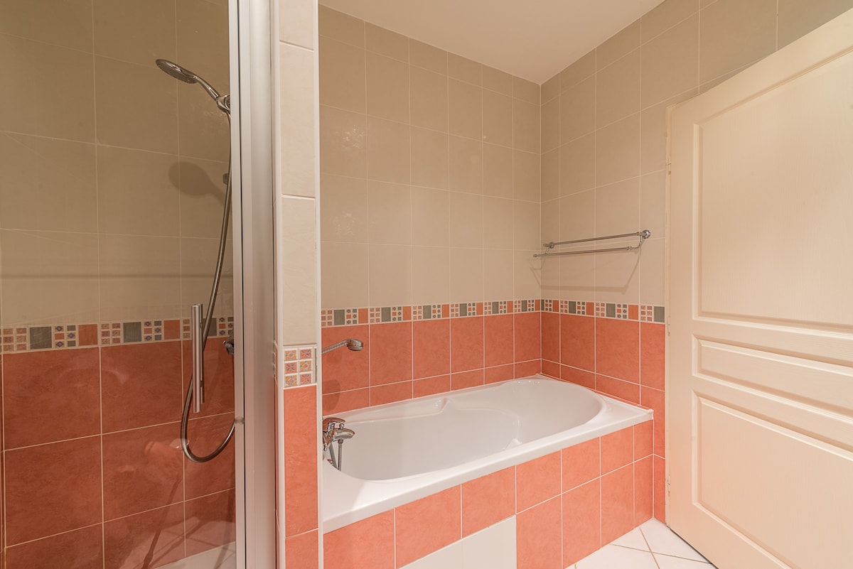 - Bedroom n°2 : 1 double bed (140x190) with storage cupboard and its adjoining bathroom with bath, shower, washbasin and Wc.