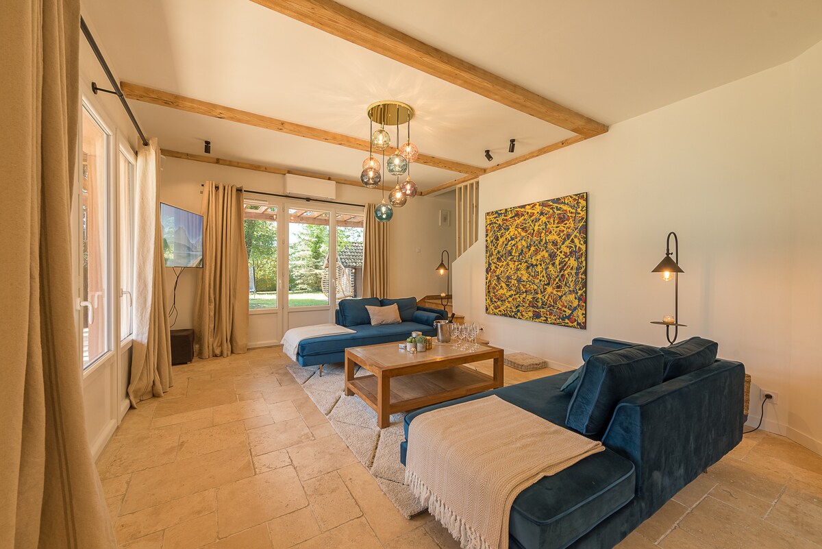 - Living room with two sofas, a removable Tv and a dining area, all with a magnificent view of the lake and access to the terrace and garden via a wooden pergola of over 1076sqf. Sonos system in the living room