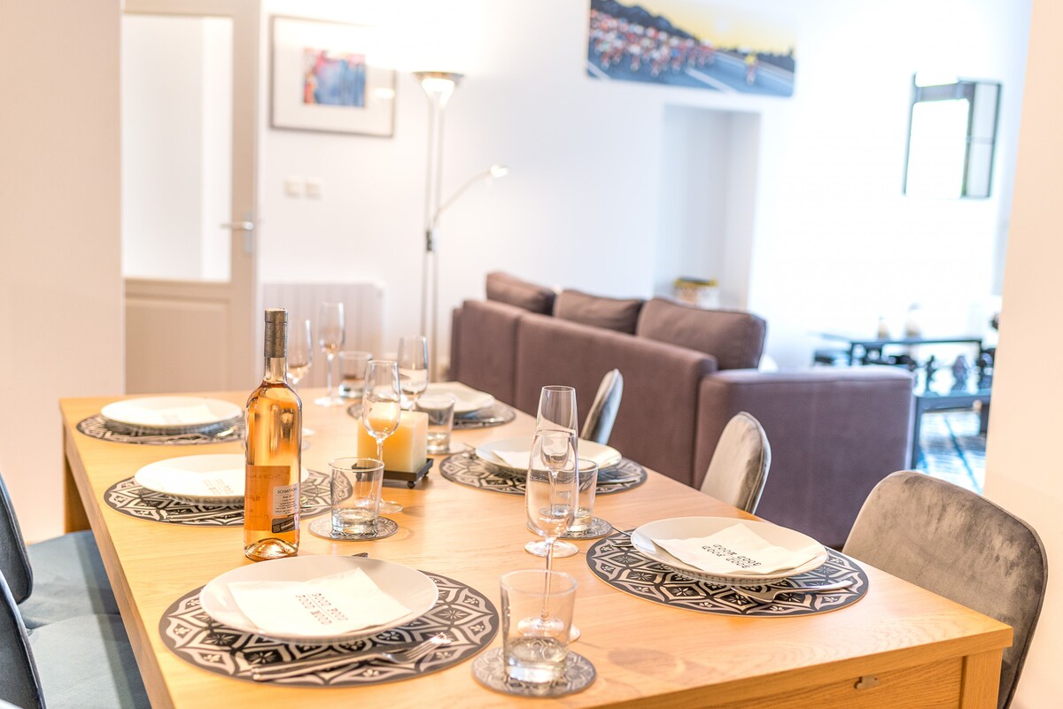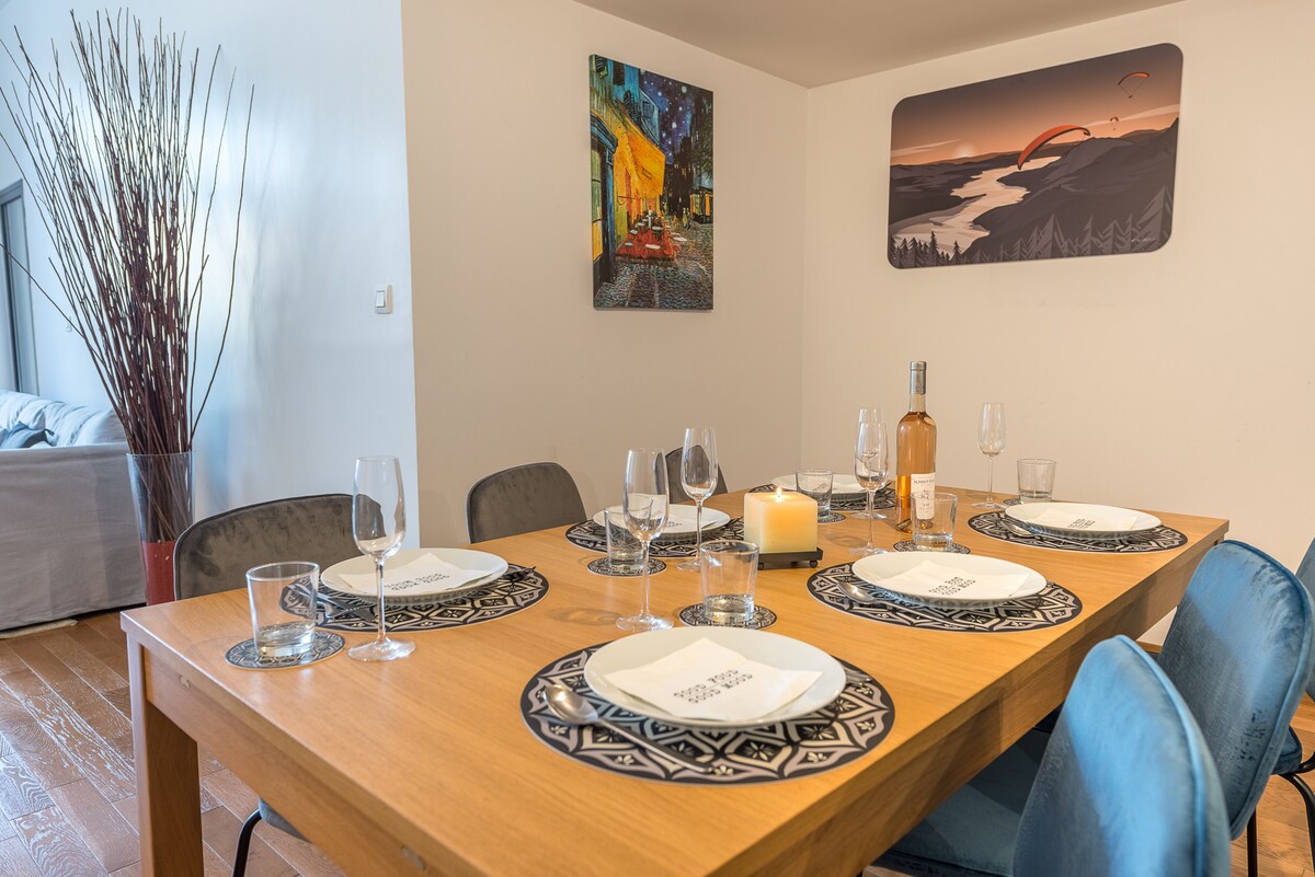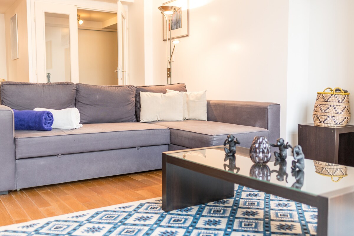 - Living room open on the terrace by wall to wall bay window, 2 sofas including a comfortable sofa bed (the living room does not have blackout blinds)