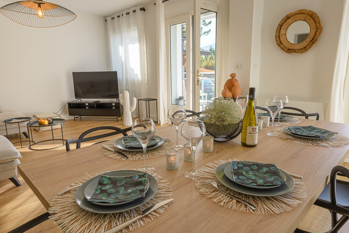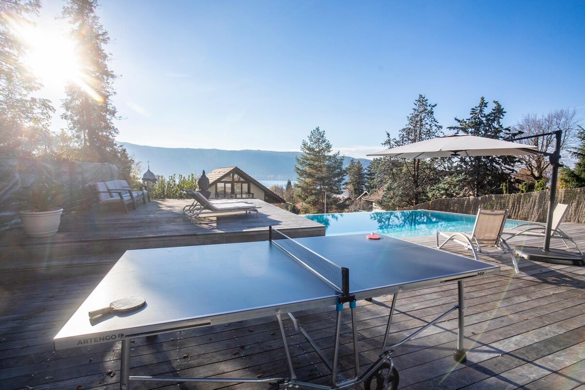 We had a wonderful family stay (2 adults, 2 children 12 years and 9 years). The location is perfect: close to the lake, peaceful, beautiful surroundings and far enough from busy Annecy to relax but close enough to catch the free shuttle bus (stop right outside the apartment) to enjoy this beautiful town. We enjoyed going to Talloires for swimming which is a very short car ride. The living area is a good space and we really enjoyed watching a movie when the weather wasn’t so good for one of our days. The swimming pool is fantastic, very clean and private. The hosts were extremely helpful and responsive - assisting us with each and every request. They even organised a bike hire delivery to the apartment and collection. Nothing was a problem. All in all I would highly recommend this excellent apartment - it is a real find.