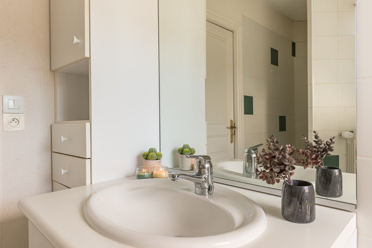 - 1 bathroom : shower + bathtub + 1 sink + changing table