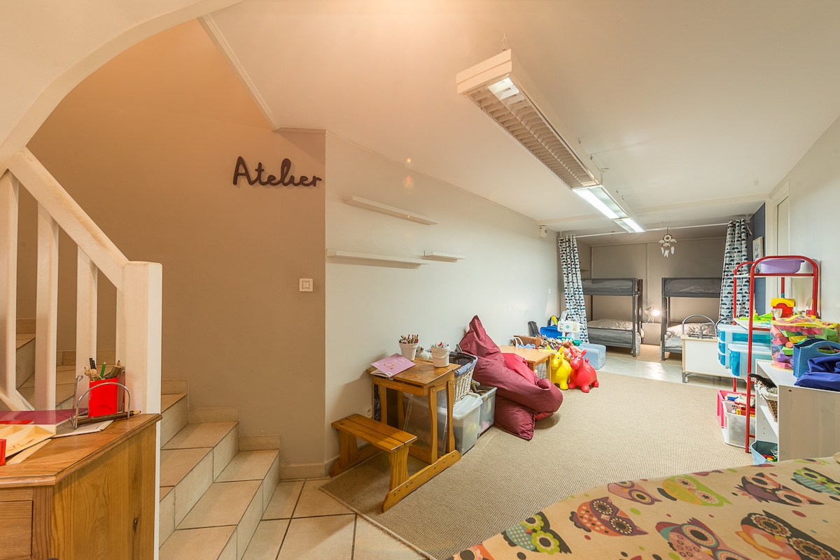 A family house where children are welcome (game room and dormitory room at their disposal!).