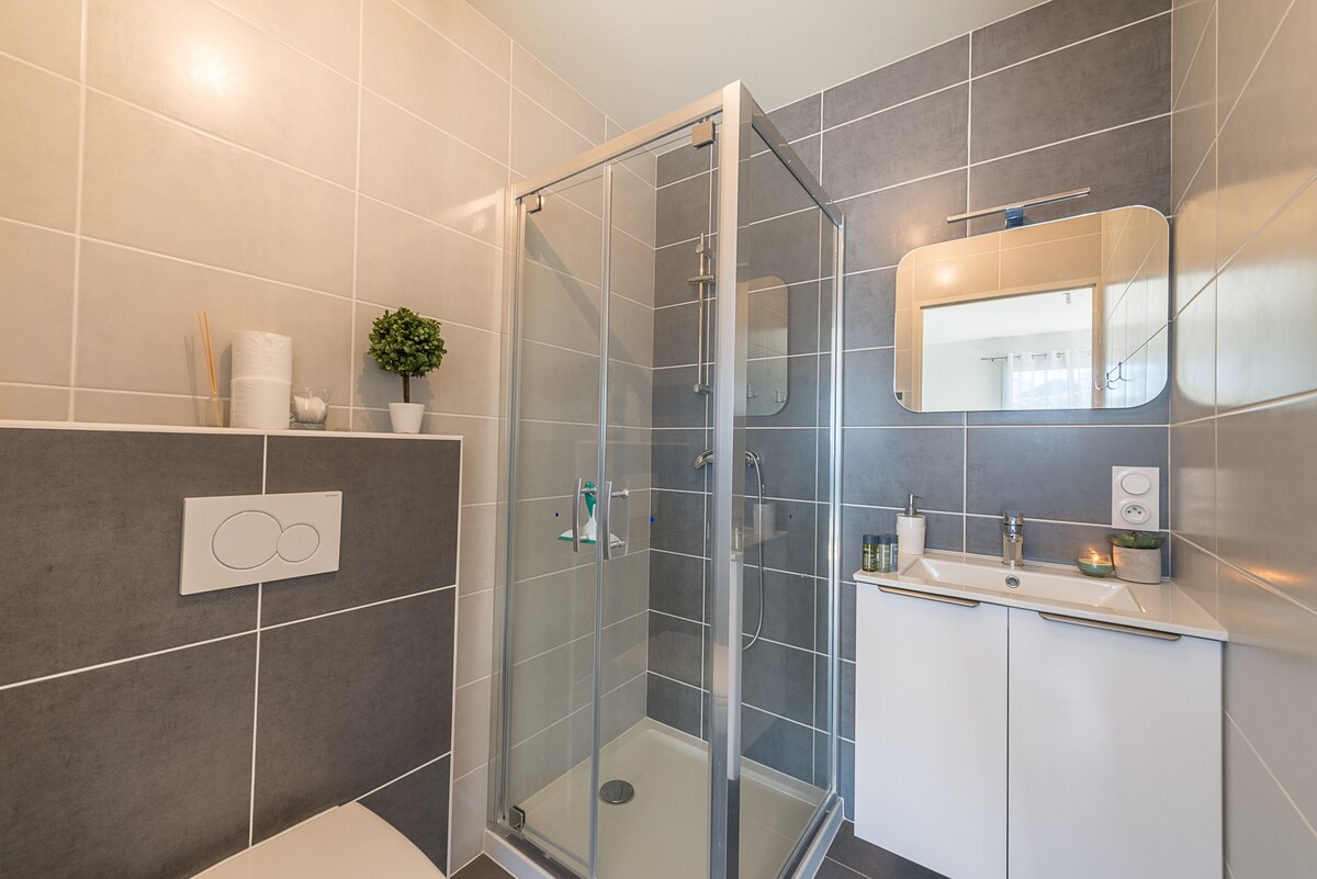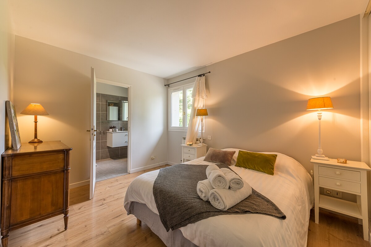 - Bedroom n°1 : 1 double bed (140x190cm) ensuite bathroom (shower, 1 basin, 1 toilet)