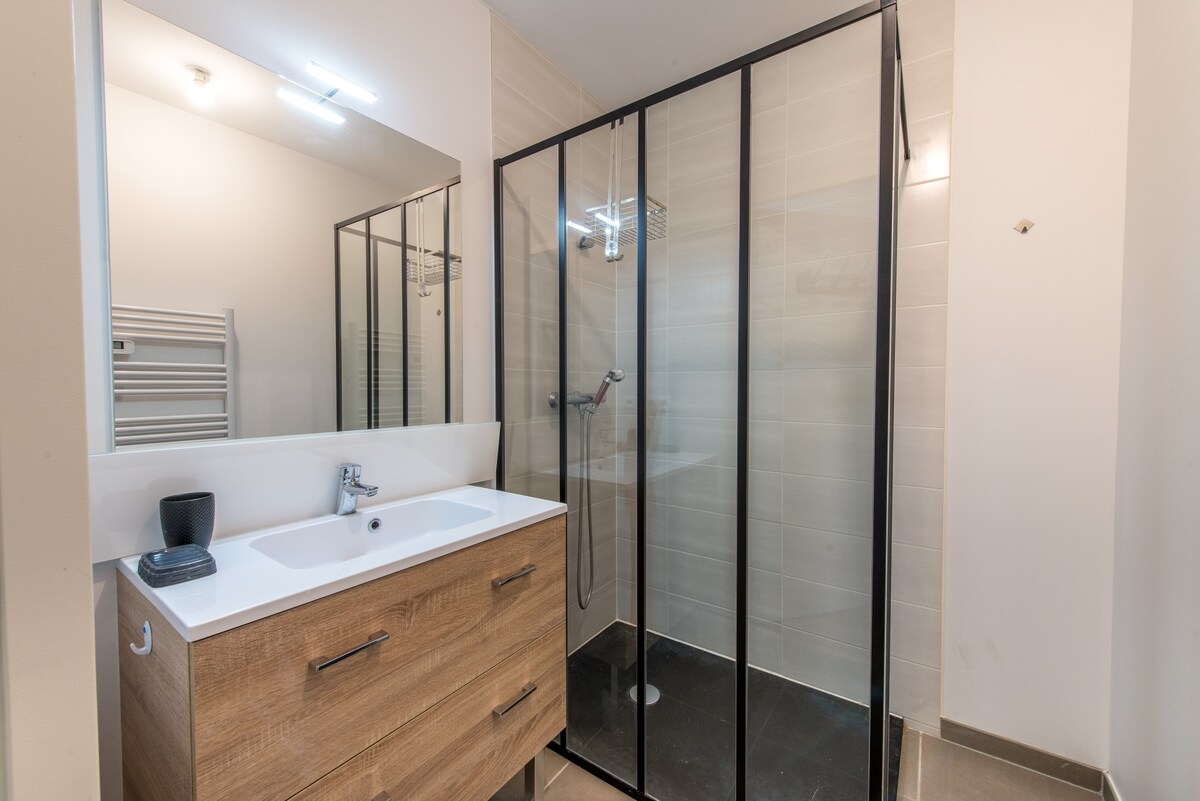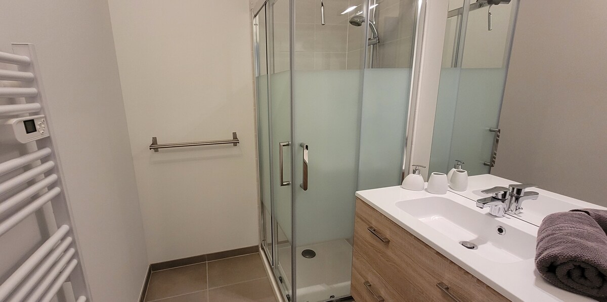 - 2 bathrooms with shower and sink + bathtub in one of the bathrooms.