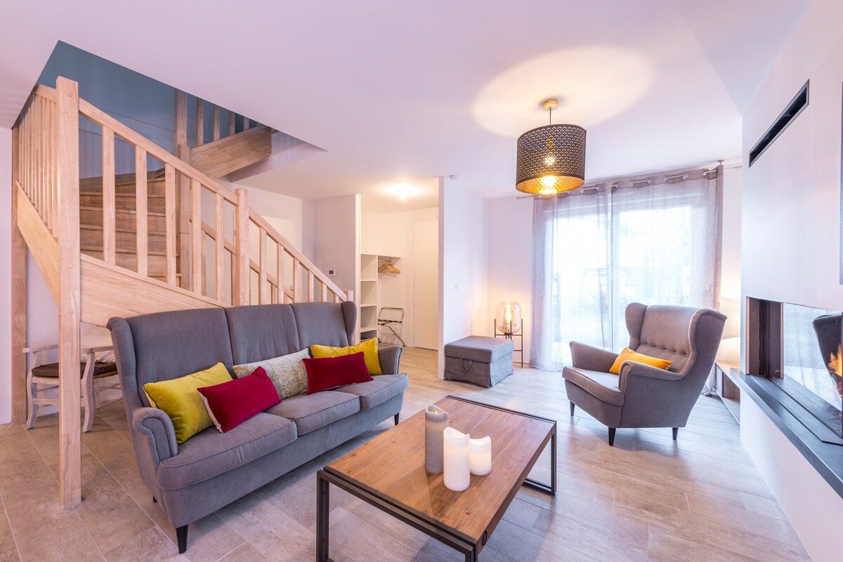 The careful decoration of these spacious and luminous houses is enhanced by a very pleasant gas fireplace offering a cosy spirit that is much appreciated. A fireplace in every living room!