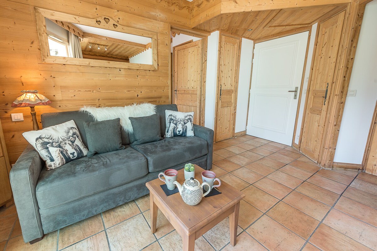 - Mountain-style living area with fully-equipped kitchenette (ceramic hob, combined microwave oven, dishwasher, kettle, coffee maker, chopping board, toaster, Senseo coffee machine...), dining table for 4.
