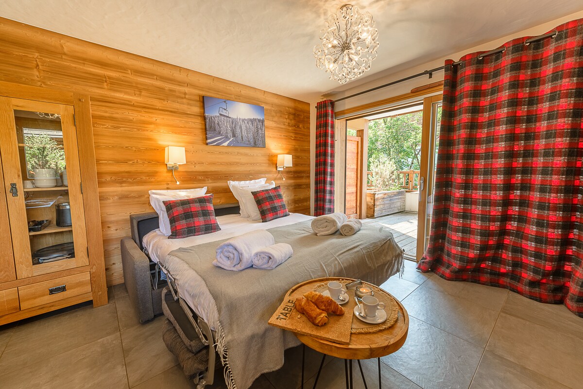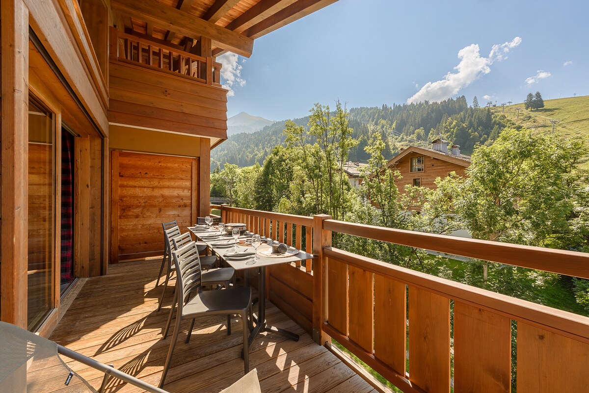 - A south-facing balcony (or terrace if the flat is on level 1) with a view of the mountains and the village of La Clusaz.
