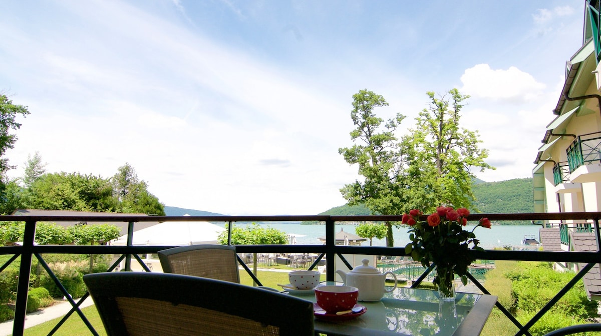 Lovely studio apartment. Fabulous views from our balcony over the lake and mountains. Excellent water sport activities available on the complex, should you wish to try. Duingt is a great base to explore the area. The cycle network is excellent and perfect for getting around. Annecy is about 5 miles away and well worth a visit. Full of character with quaint streets in the old part. The lake itself is beautiful, clean and fabulous for swimming in (not too cold at all). Surrounding mountains have some very nice bars to eat and drink at, whilst taking in the amazing views. Cant speak highly enough of the whole area - stunning.