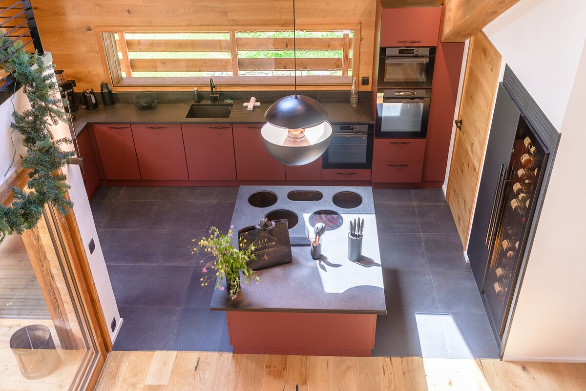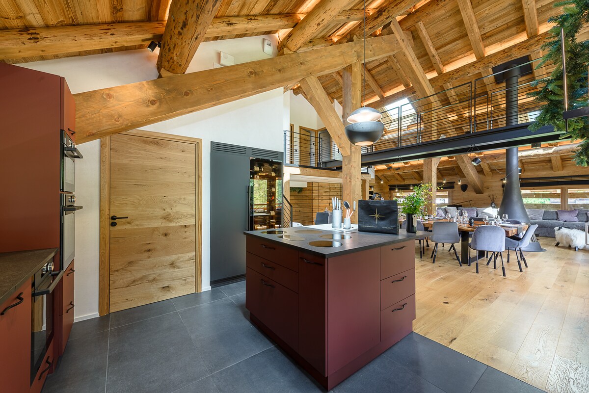- Fully equipped kitchen with everything necessary, functional and spacious with a central island (dishwasher, ovens, microwave, Nespresso coffee machine, filter coffee machine, raclette appliances, fondue appliances, pierrade, ice machine...)
