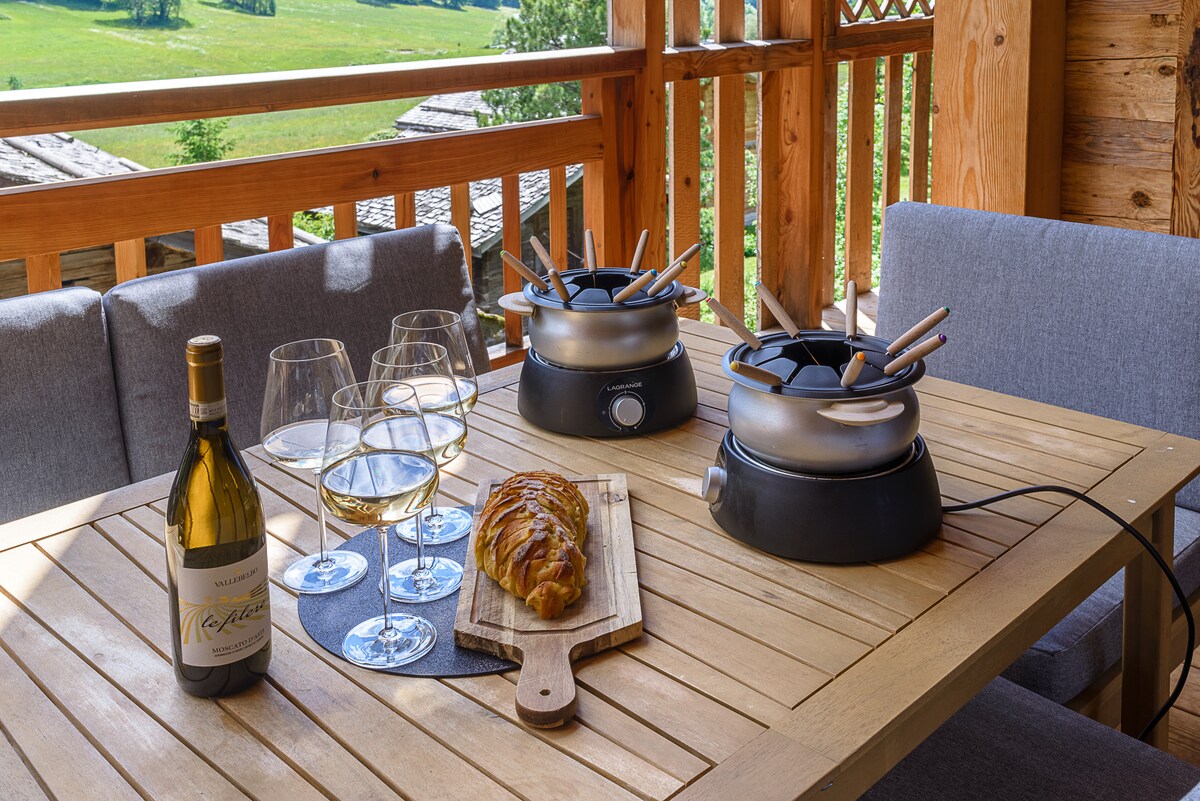 The south-facing terrace of the chalet, with a view of the Aravis mountain range, is unbeatable. Equipped with a large table and outdoor sofas, you will struggle to leave in the afternoon!