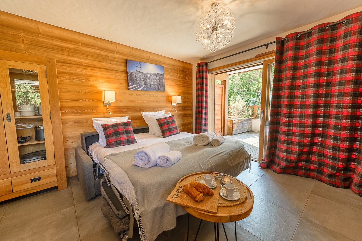 Splendid 71 m² flat, designed to sleep 6 to 8 people, nestled in the heart of a prestigious 5-star Residence , ideally located next to the Bossonnet ski lifts in La Clusaz, and a short walk from the village amenities.