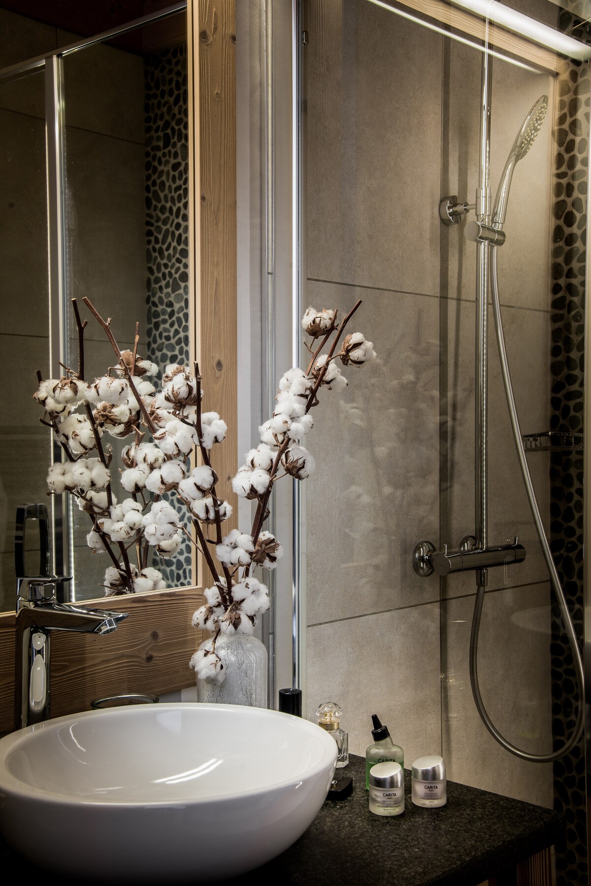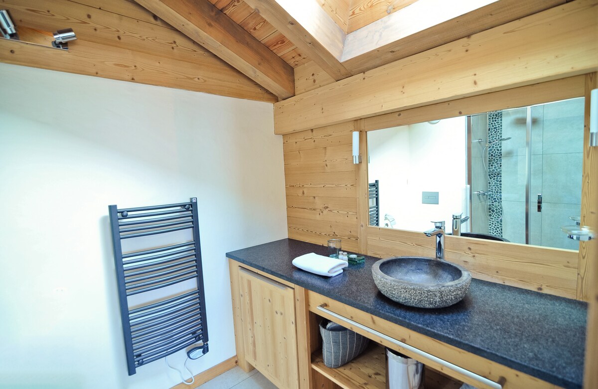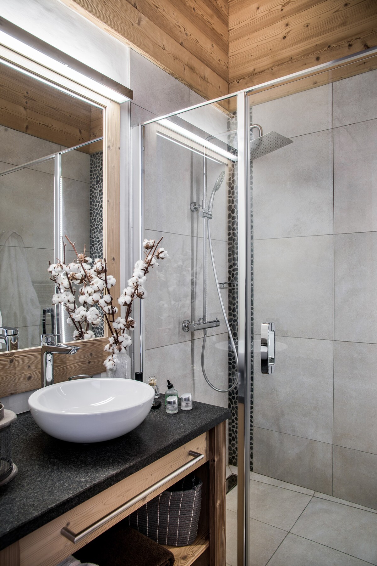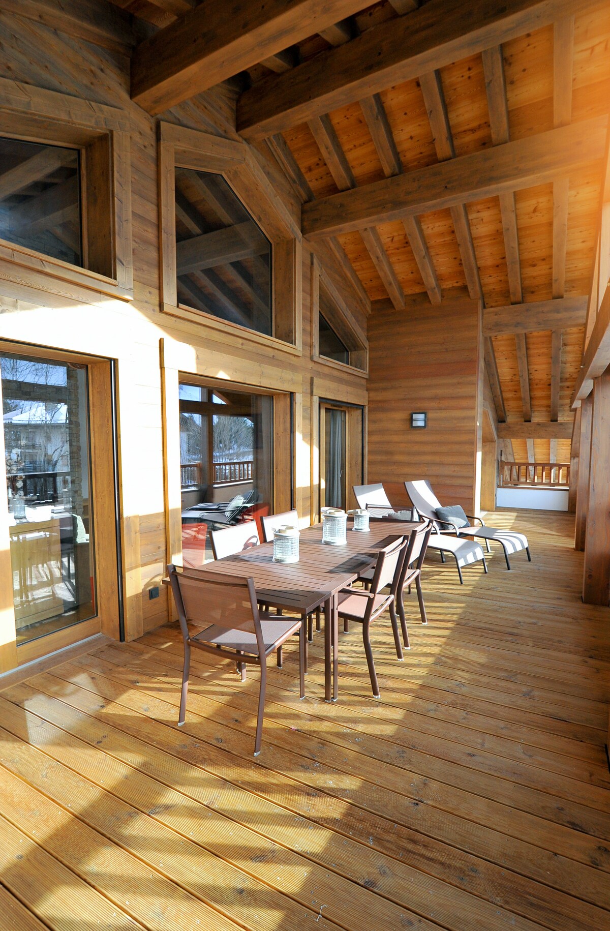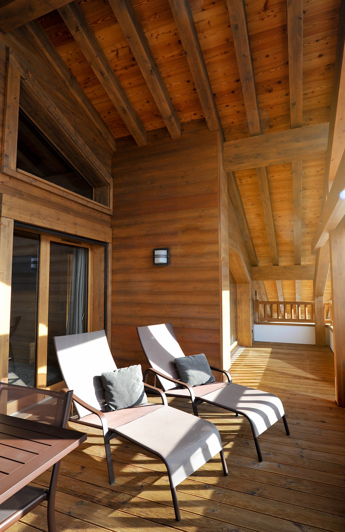 - A 365sqf south-facing terrace with views of the mountains and the village of La Clusaz.