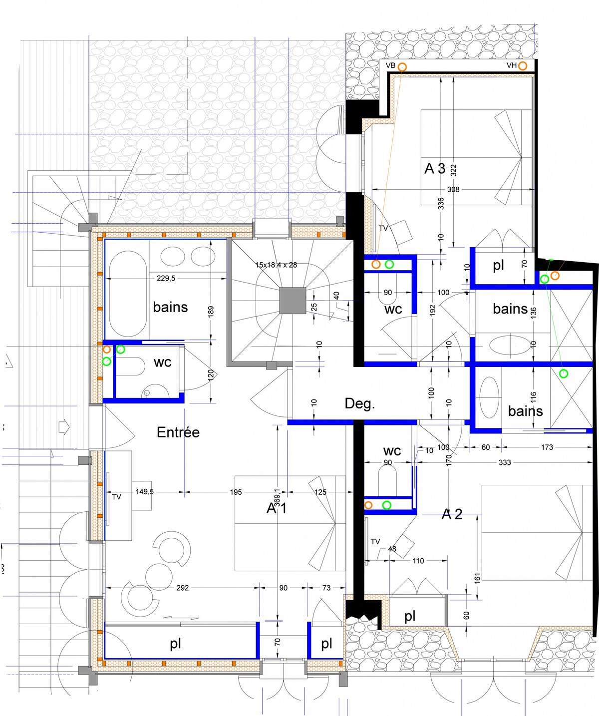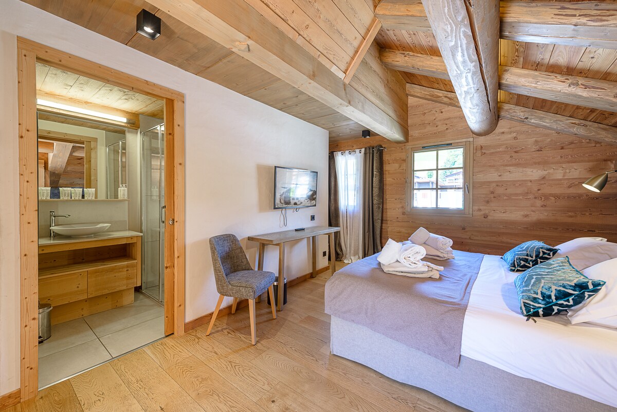 Set in a former farmhouse, it consists of 2 half-chalets offering the possibility to be rented in full thanks to removable partitions on the top floor. Here, each bedroom has its own en-suite bathroom and private toilet.