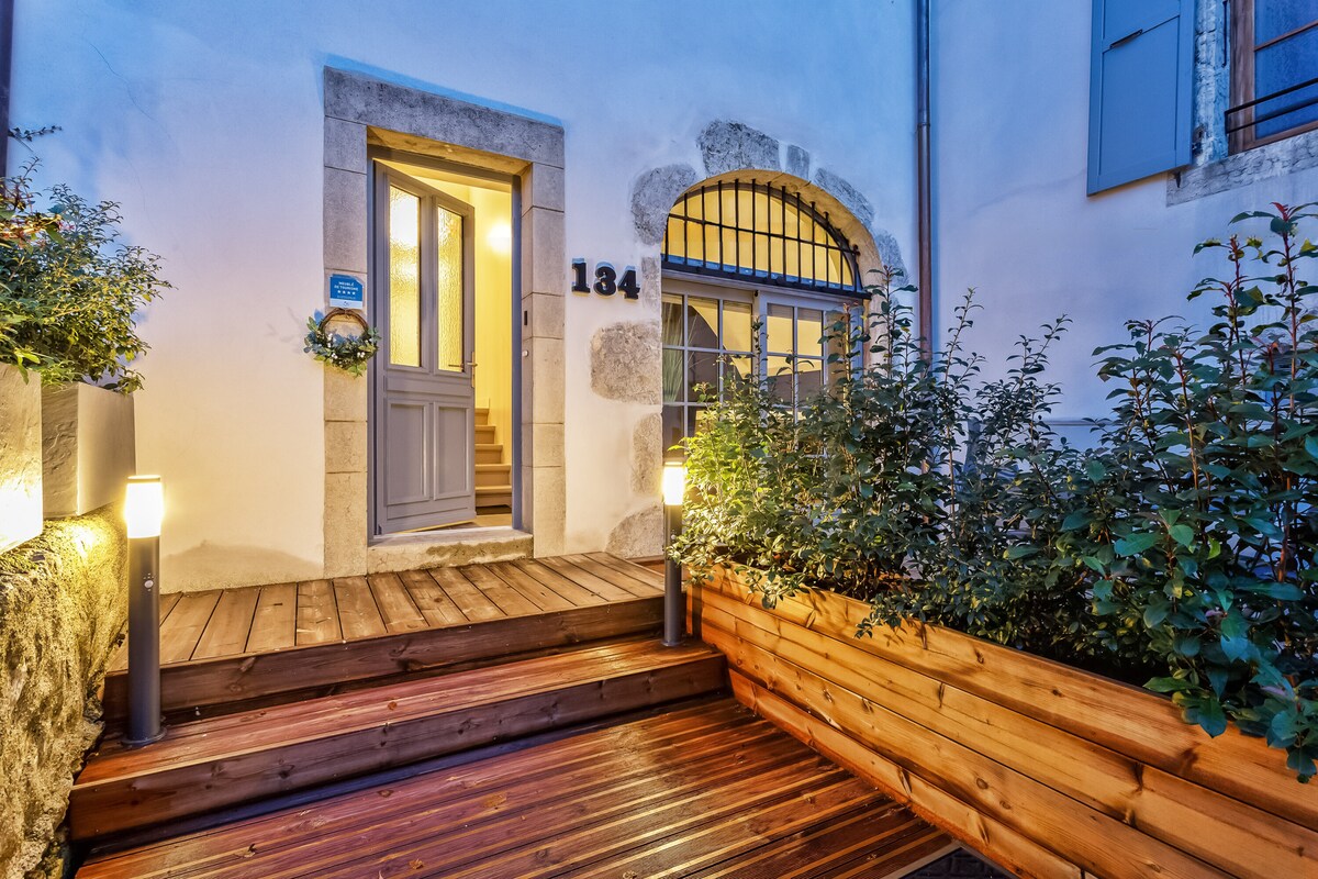 - Access to the charming and quiet east-facing terrace for sunny breakfasts, sheltered by a pergola with garden furniture and a large dining table.